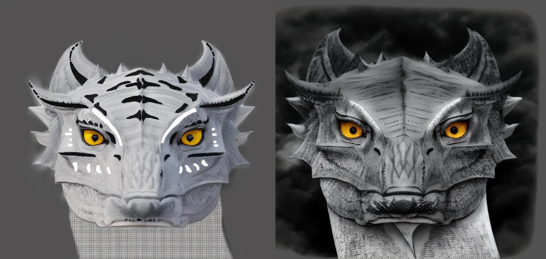 С самого начала написания книги в моей голове присутствовал некий "идеальный образ" крылатого красивого грациозного хищника. Иногда я представлял, как смотрю на него, изучая некоторые детали, а он смотрит в ответ). Спустя некоторое время желание попробовать отрисовать свою задумку стало достаточно сильным, чтобы взять в руки карандаш, а затем и электронное перо (благо некий опыт рисования у меня имелся, правда, недостаточный для такой сложной задачи, ведь большинство найденных на просторах референсов меня не устраивали).