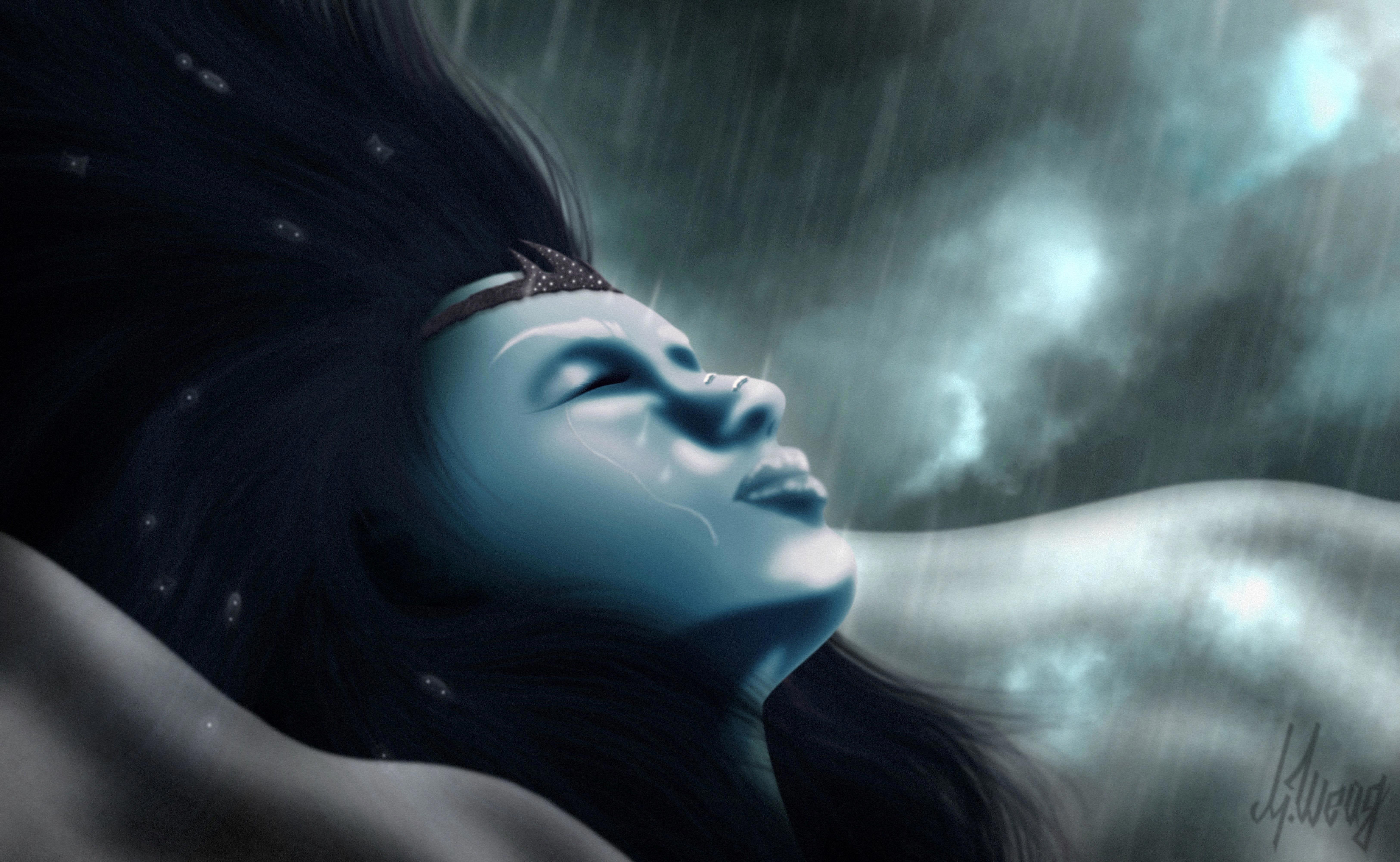 «…И увидев, что сотворила с мёртвой землёй, чему даровала начало, она взмолилась роняя первые для неё слёзы. Небо подобно её воле ответило тем же и Лофариан окропил первый кристально чистый дождь, насытив жадную землю влагой.»