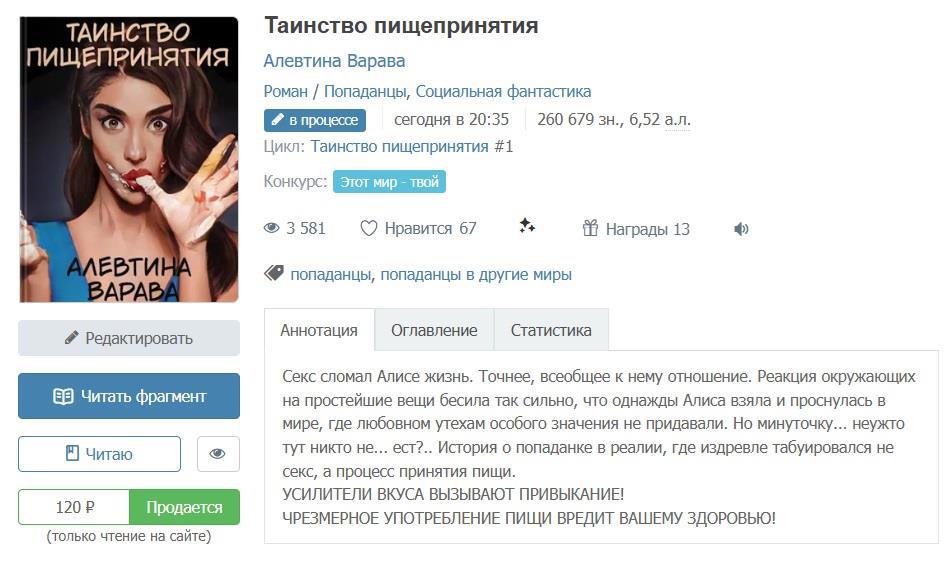 История о попаданке в реалии, где издревле табуировался не секс, а процесс принятия пищи...