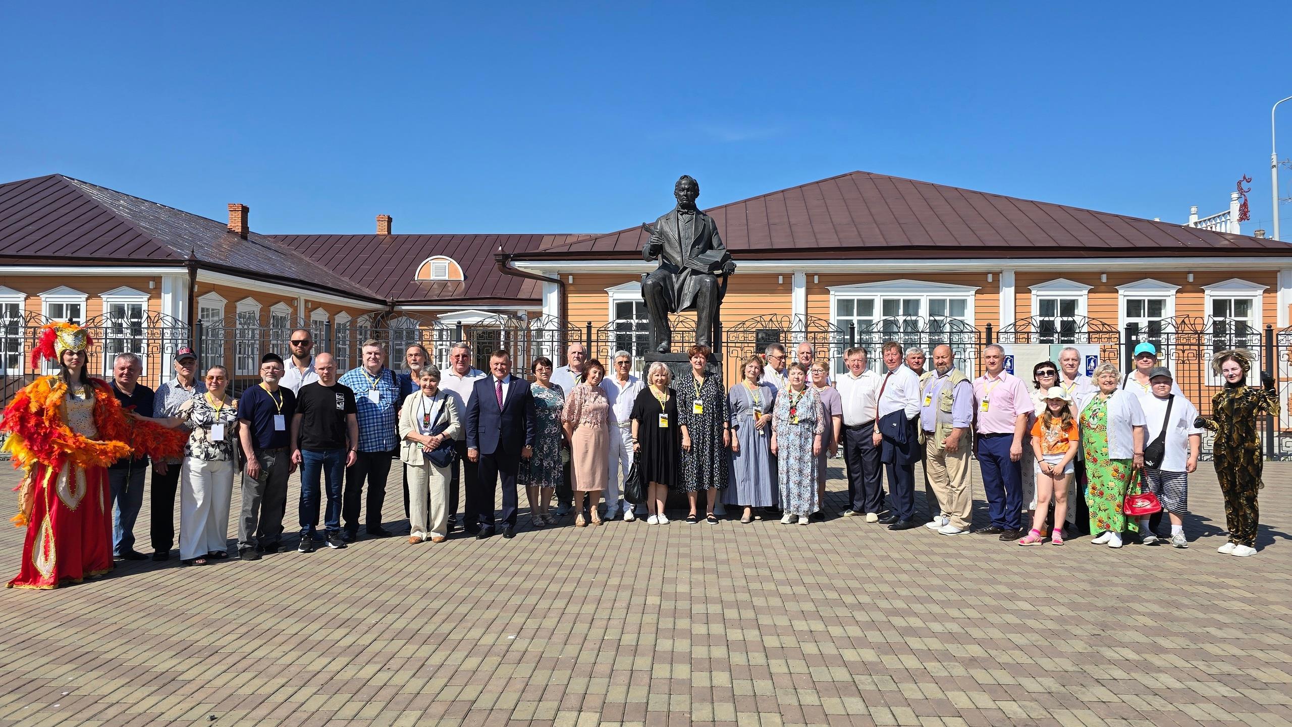 На фото: делегация гостей Ершовских дней в Ишиме у музея и памятника писателю П.П. Ершову