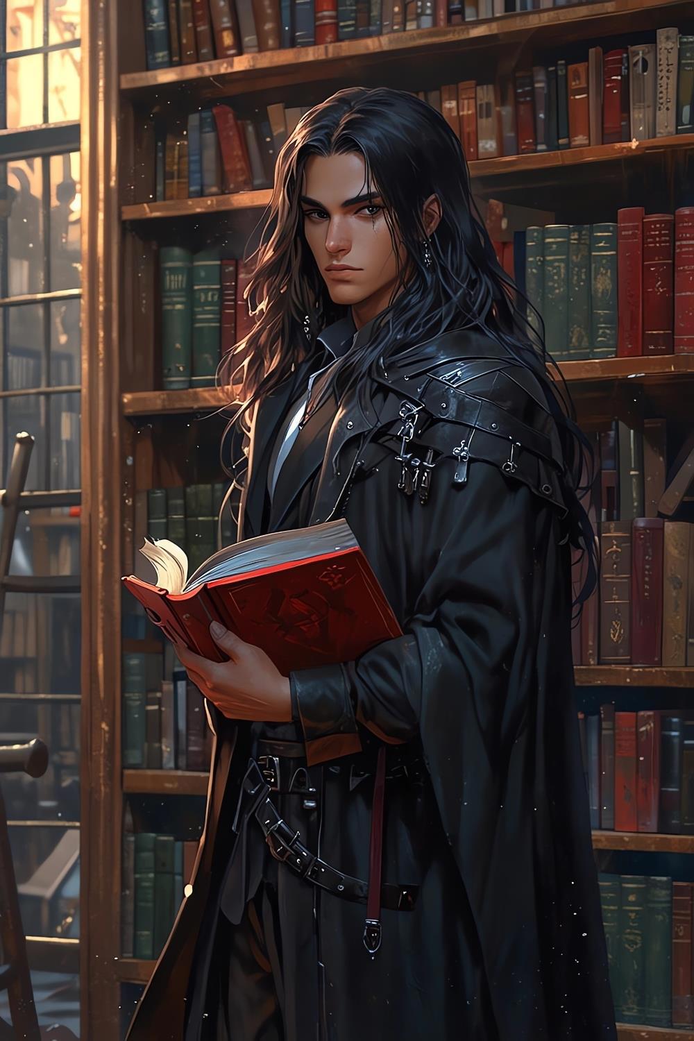 И если с первой (шкатулкой-тайником) проблем не было, то с образом героя пришлось помучиться. Ведь сетка отдает предпочтение одному заявленному в промте цвету. Если глаза зеленые, а цвет одежды не указан 99% артов будут в зеленой одежде. Здесь преобладание стало красного - цвет книги в руках. И сколько бы я не говорила, что плащ-накидка должен быть черным, сеть упорно рисовала его красным. Но в результате я добилась и отсутствия лишних пальцев, и раскрытой книги нормального вида, а не "трехтомной портянки с одной стороны и огрызка с другой", и даже плащ стал черным, без доработки фотошопа. Отправила. Мнения автора произведения я еще не читала, поэтому пока не в курсе понравилось ли ему, но очень надеюсь что да.