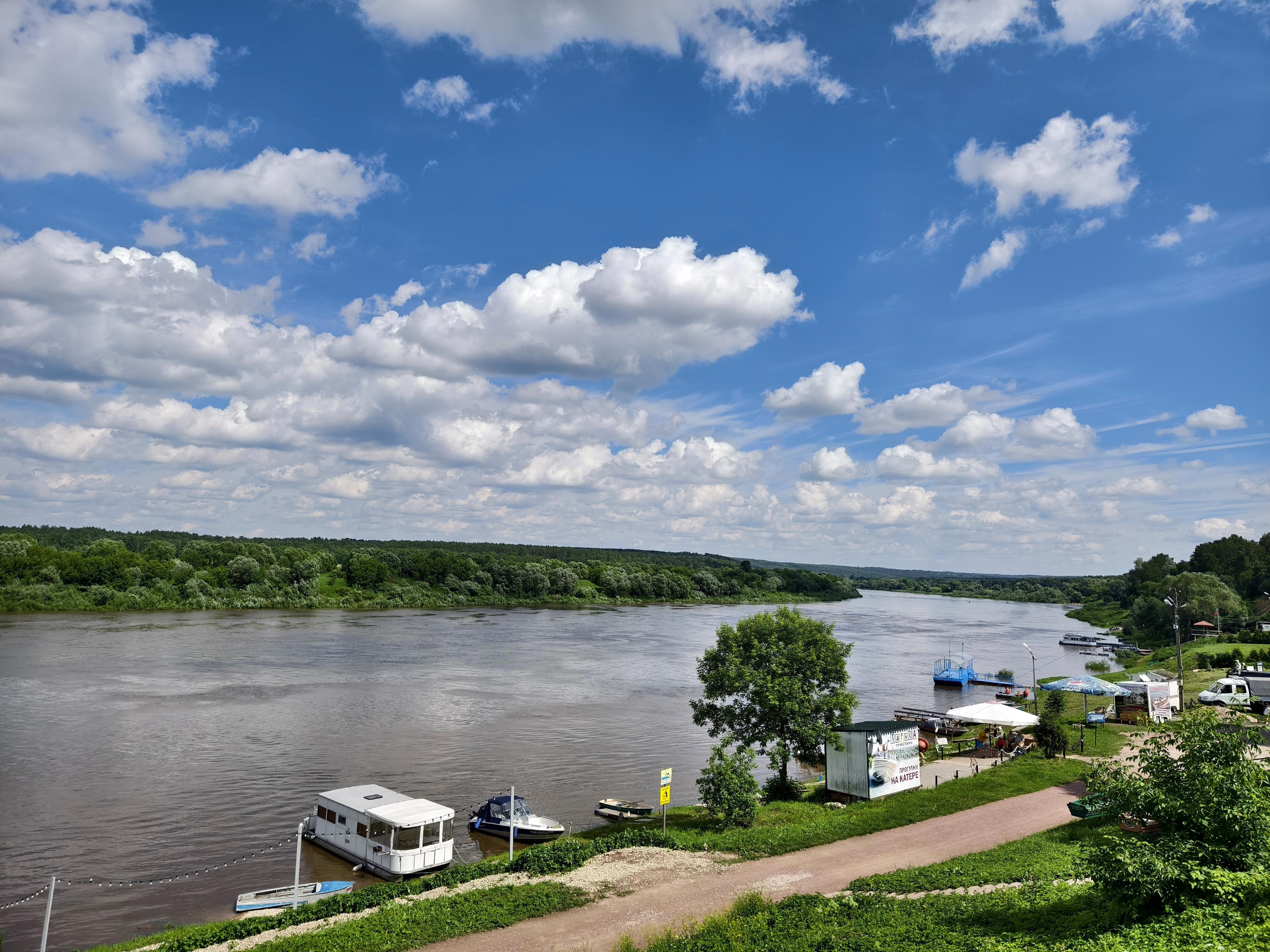 А это вид на реку Ока с набережной этого города. Как будто облака тормозили и оставили на небе следы от шин.