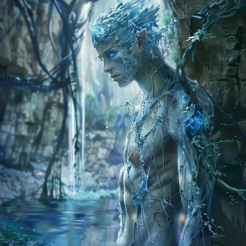 Из-за мёртвого тела вышел мужчина высокого роста. Его каштановые волосы выглядели словно иглы. Лицо было грубоватое, нос прямой, виднелись скулы, щёки впалые – в общем страх, да и только. В обоих глазницах у него зияли фиолетовые кристаллы. Вокруг них, на веках, под правой бровью, на щеках и на половине всего тела выглядывали маленькие кристаллические отростки, которые привносили в общую картину ещё больше уродства. Бедняга был худой и бледный, как сама смерть. Руки и ноги словно хрупкие веточки, но вот спина у него широкая. Пропорции весьма необычные. Торс прикрывали зелёные лохмотья с мехом, ноги скрыты под изодранными штанами, в правой руке лук, а за спиной колчан со стрелами – вылитый охотник.