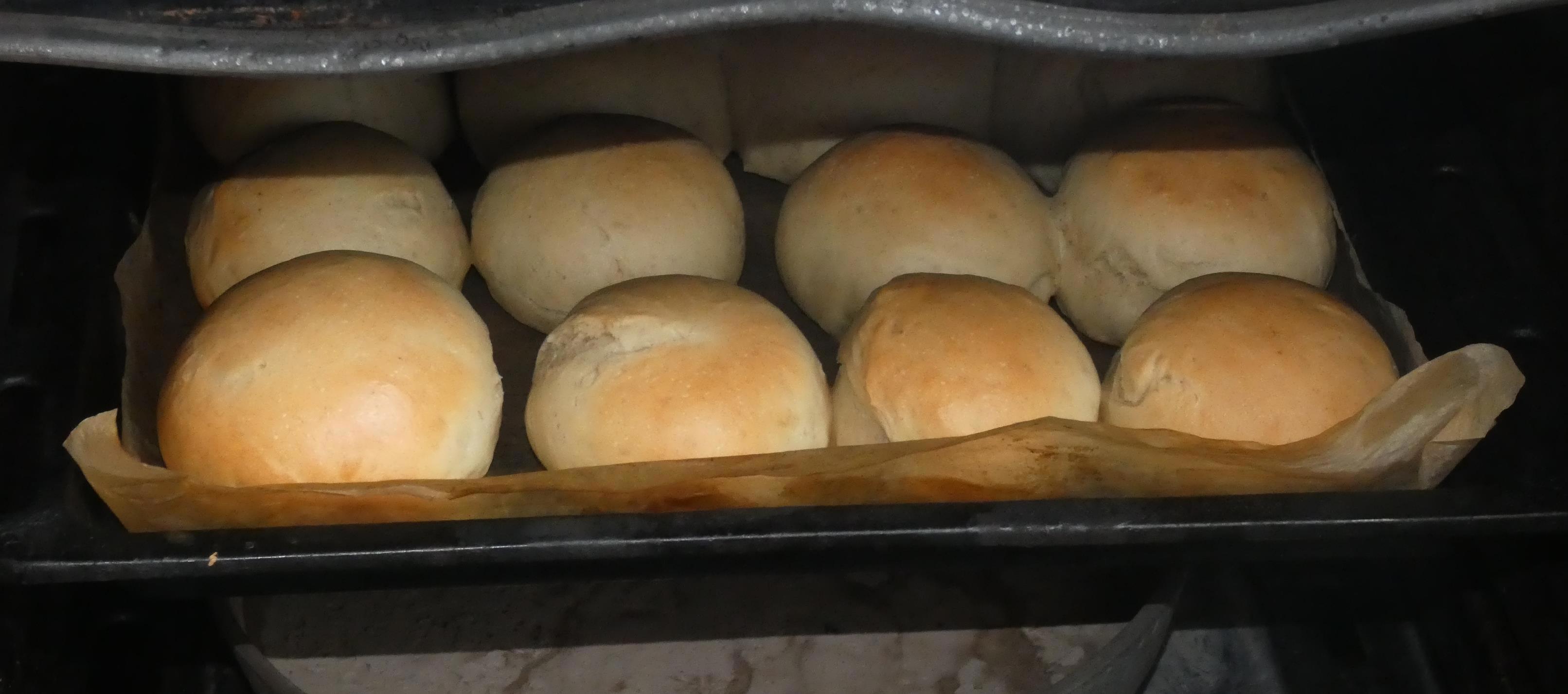 На этой неделе снова потянуло на возню с тестом. Напёк булочек, а из остатков теста - три буханочки хлеба. А всё потому, что противень для духовки у меня всего один. Не на чем булочки делать. Да и пирожки. Поэтому их всегда получается мало.