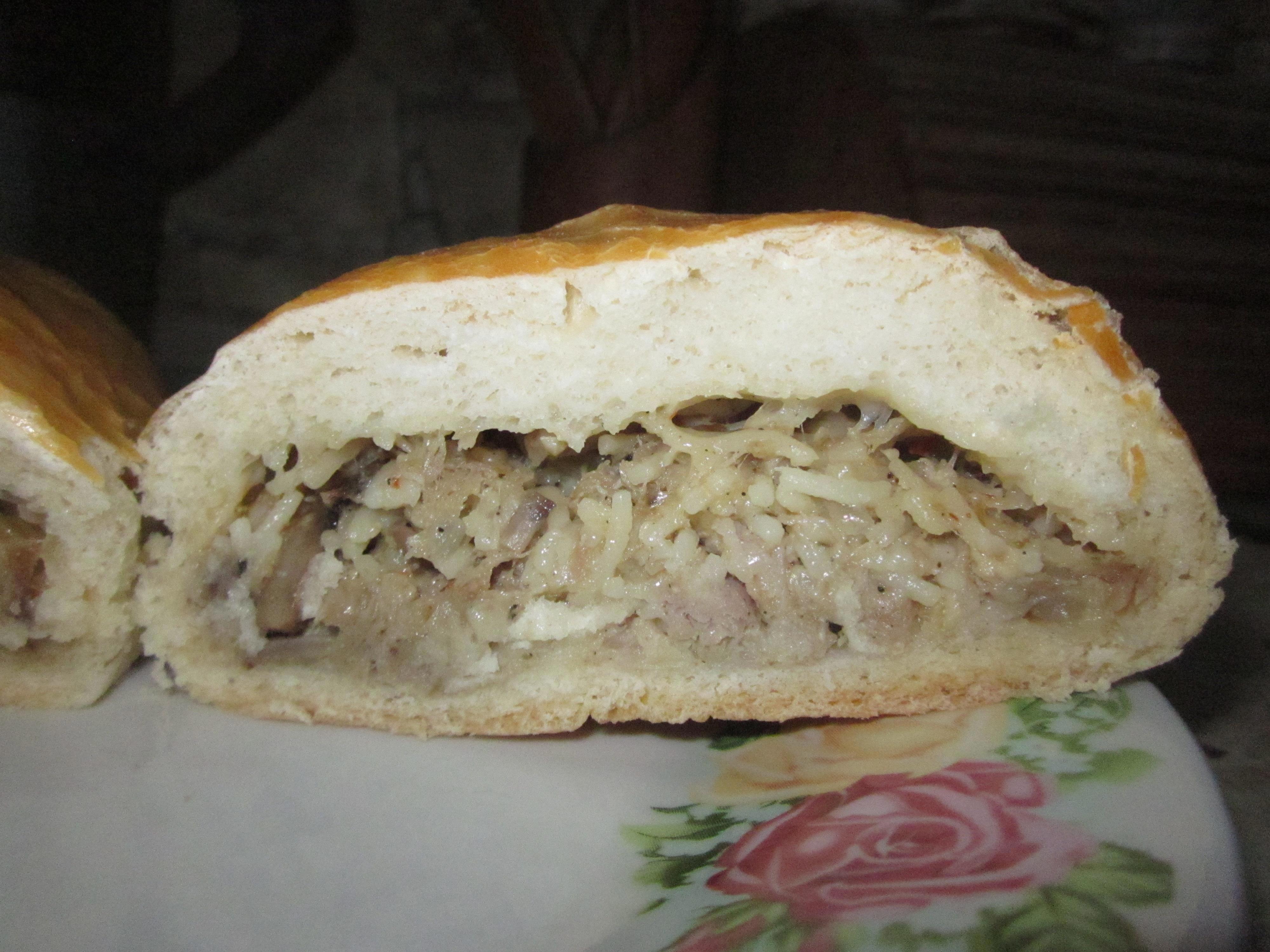 Привыкнув к тесту, паски испёк почти без труда. Потом начал экспериментировать: печь пироги, пирожки, булочки... Начинки делал сборные: мясо-рис-лук, картошка-лук-грибы. Но самым хулиганским экспериментом были пирожки с вермишелью :) Конечно, вермишель там - в основном ради смешного названия. Потому что, кроме неё, в начинке был лук, мясо, шампиньоны и тёртый твёрдый сыр. С таким же успехом я мог заменить её варёным рисом. Поскольку и рис, и вермишель имеют нейтральный вкус, ничего не изменилось бы.