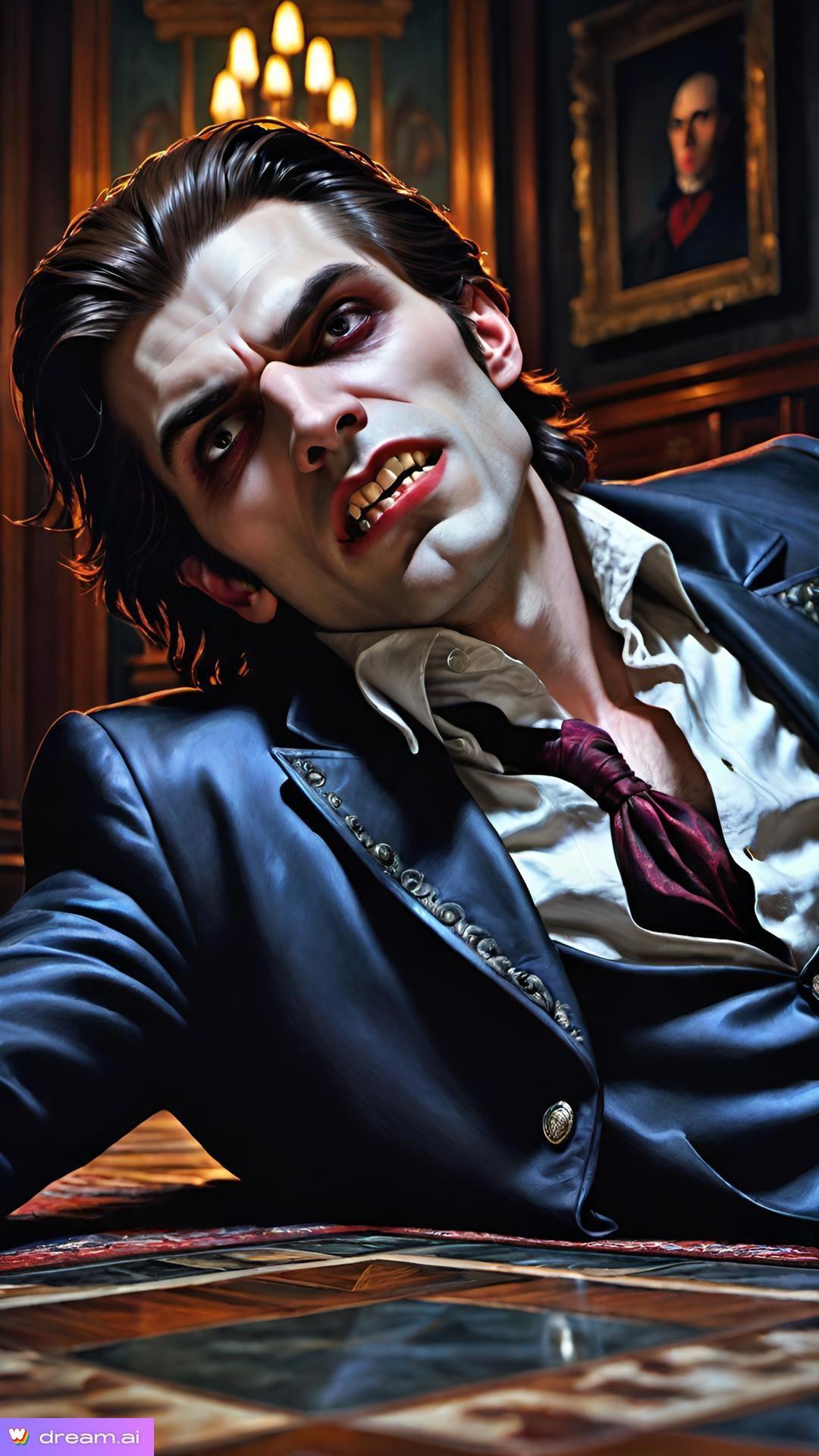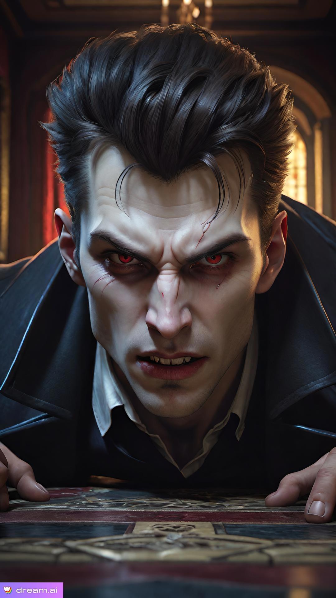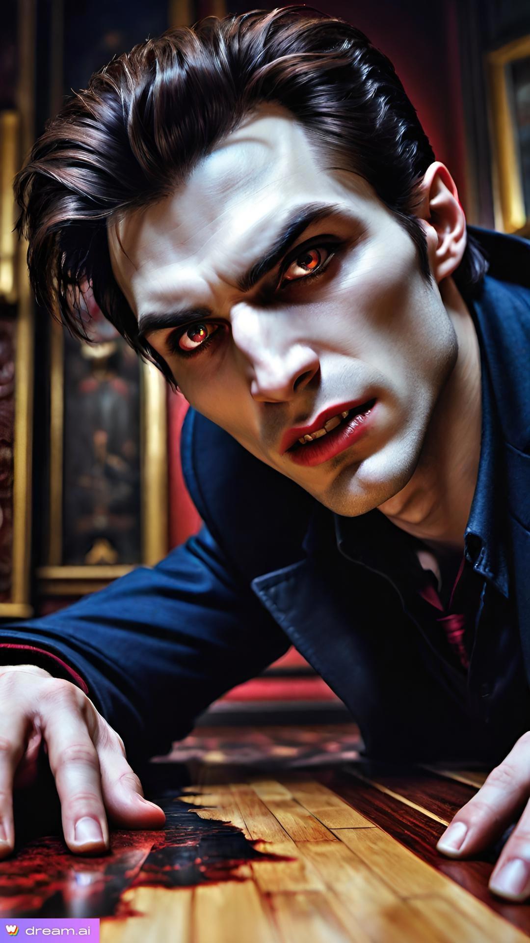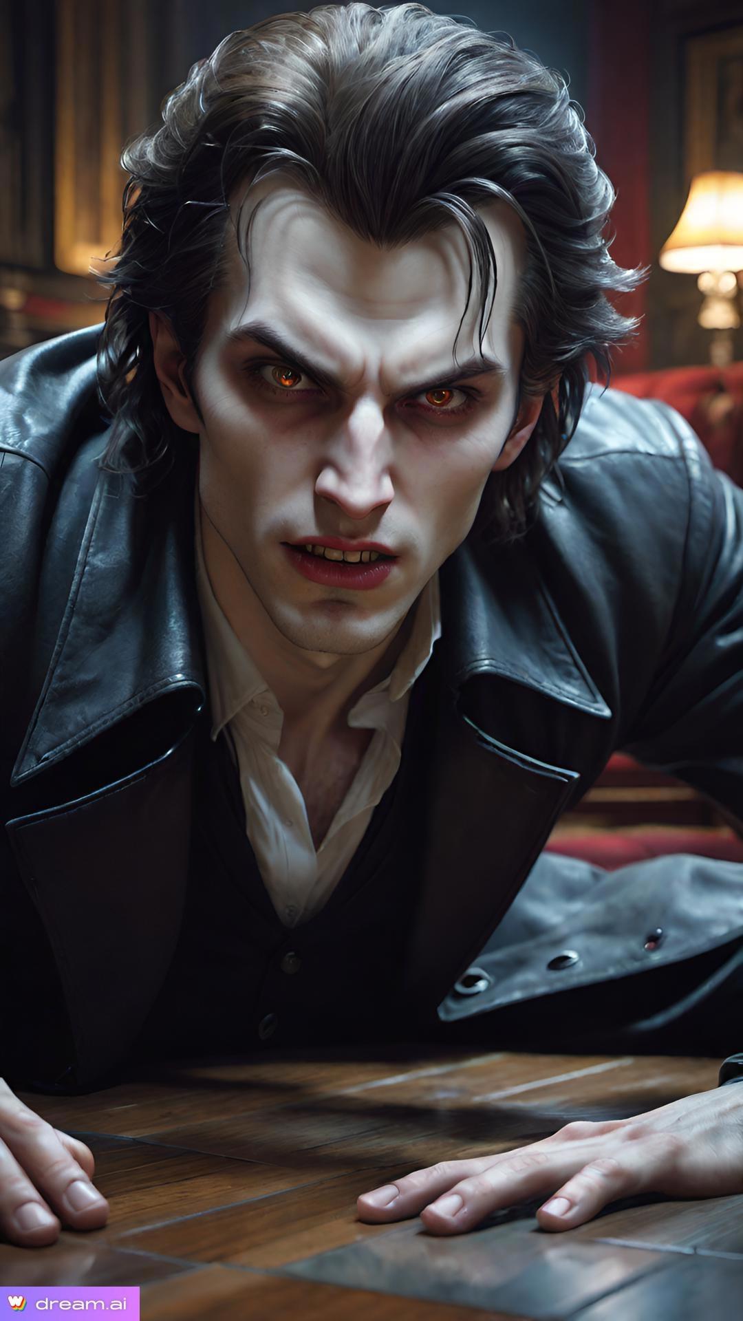 Вторая книга, которая мне досталась по жеребьевке, оказалась настолько интересной и захватывающей, что я ее проглотил за один присест. Она, кстати, тоже про вампиров в футуристическом обществе. Классных сцен в рассказе - море! Я пробовал разные, но результат, который выдавала WOMBO, был далек от того, что я хотел и видел внутренним зрением. В итоге я остановился на одном отрывке, который долго крутил, меняя промпты.