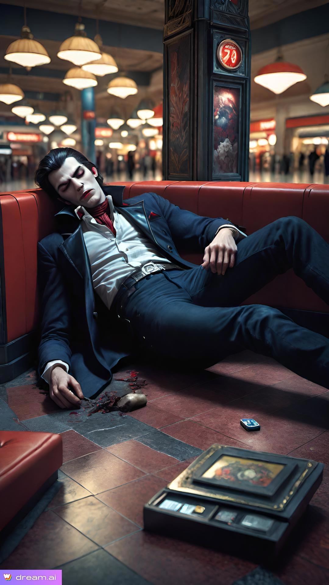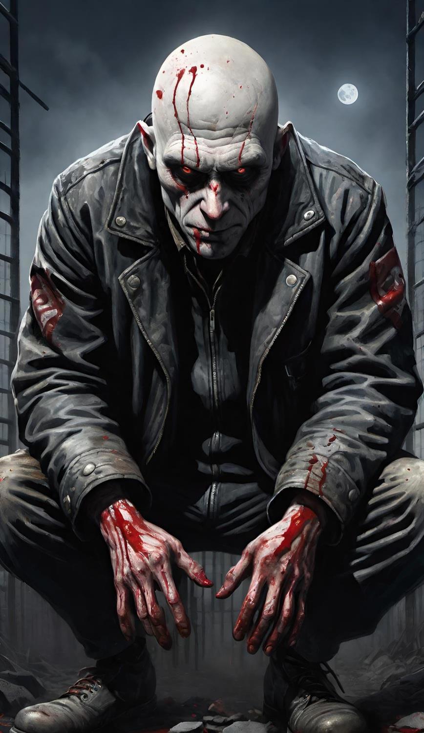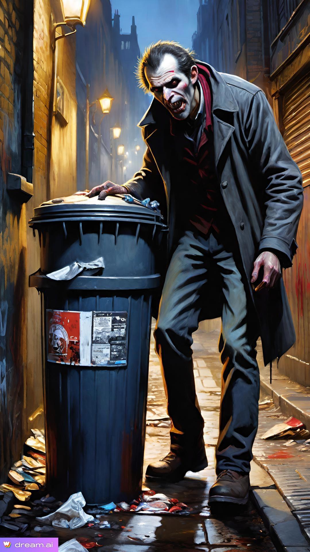 Вторая книга, которая мне досталась по жеребьевке, оказалась настолько интересной и захватывающей, что я ее проглотил за один присест. Она, кстати, тоже про вампиров в футуристическом обществе. Классных сцен в рассказе - море! Я пробовал разные, но результат, который выдавала WOMBO, был далек от того, что я хотел и видел внутренним зрением. В итоге я остановился на одном отрывке, который долго крутил, меняя промпты.