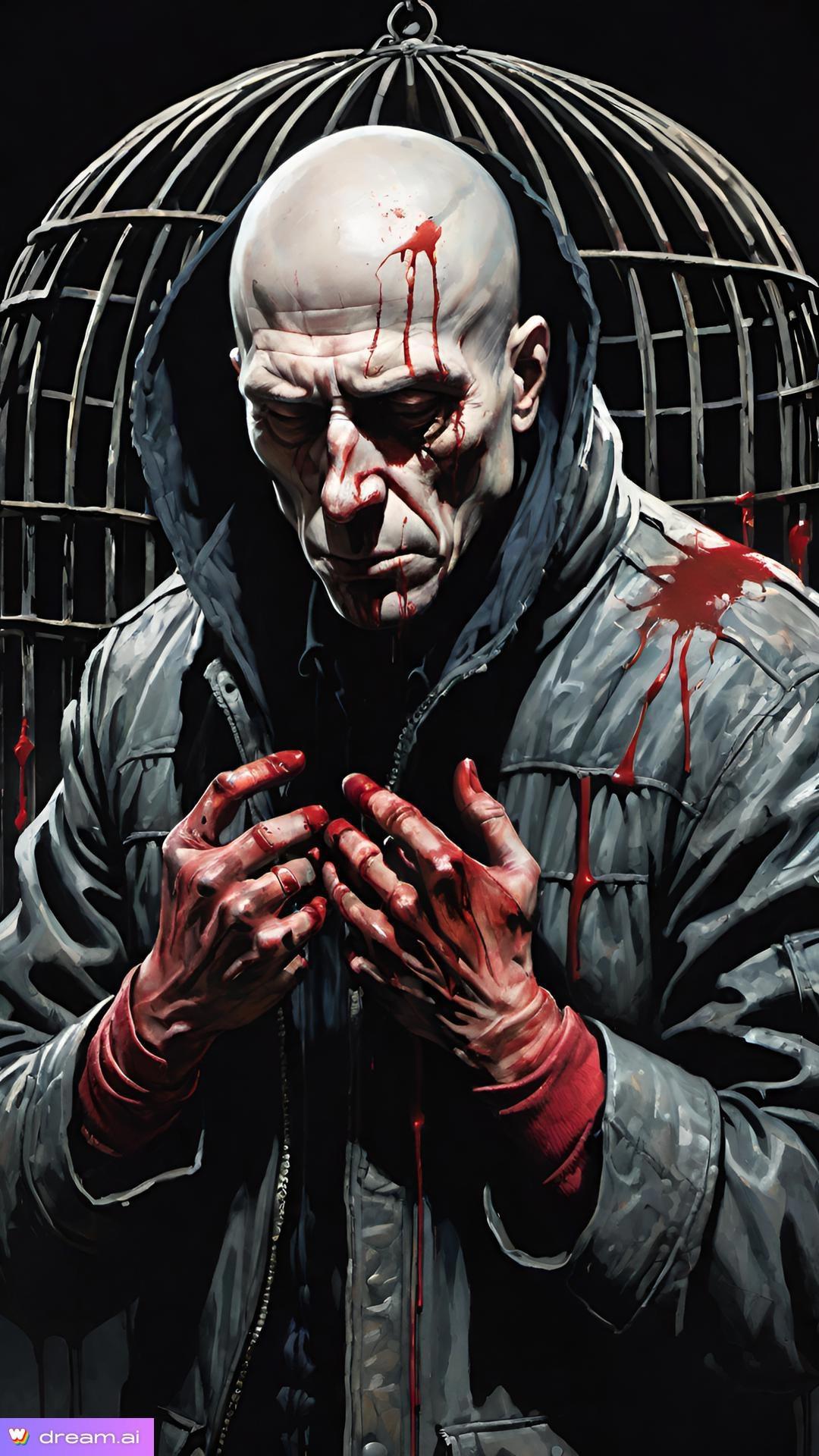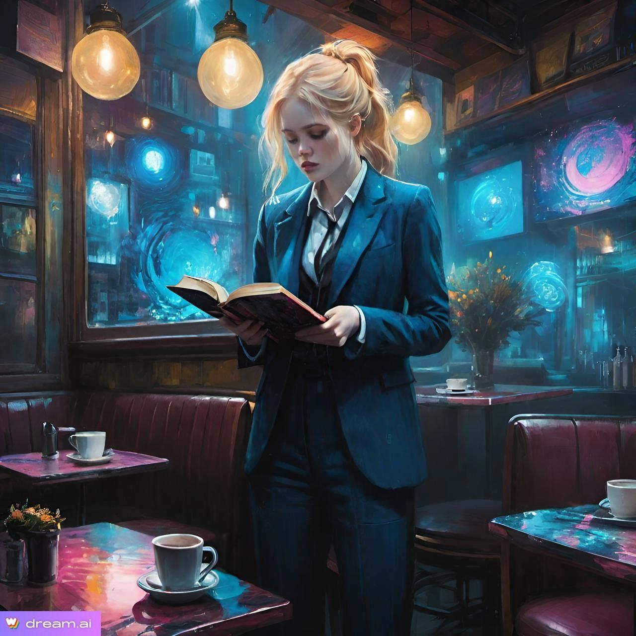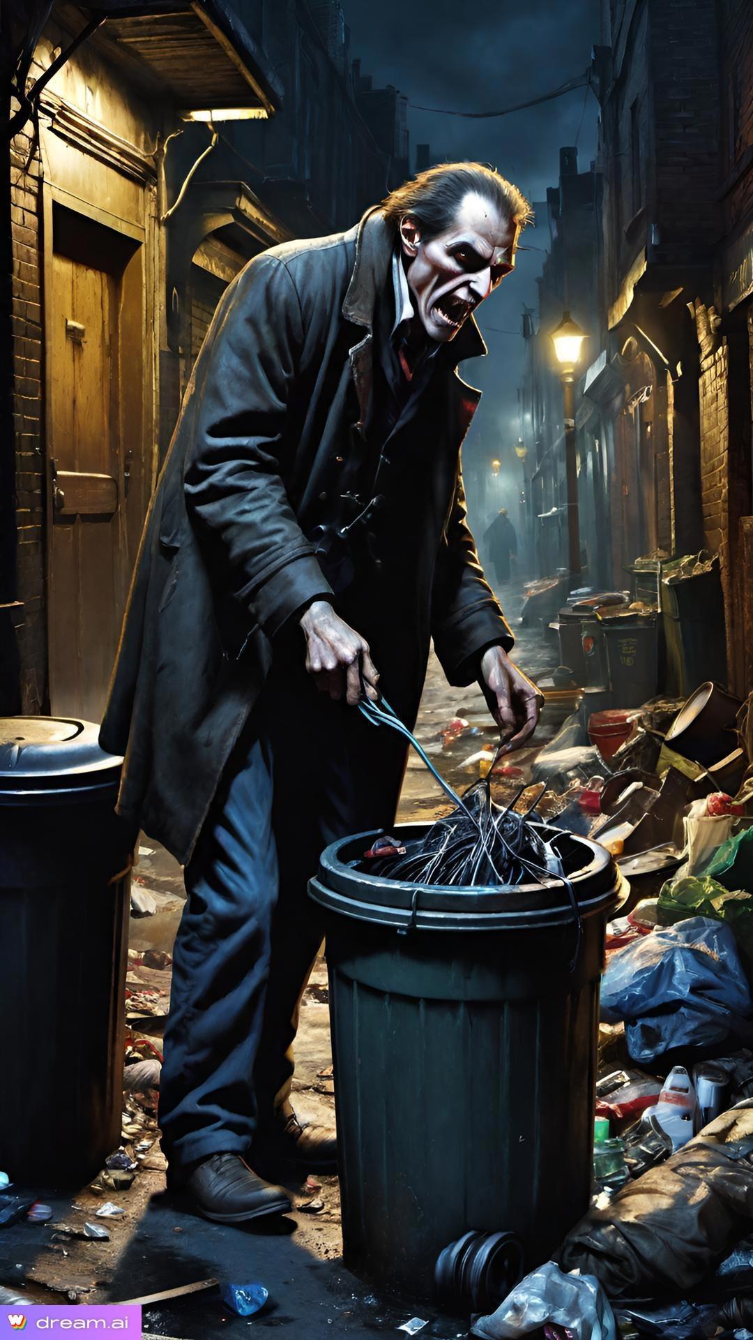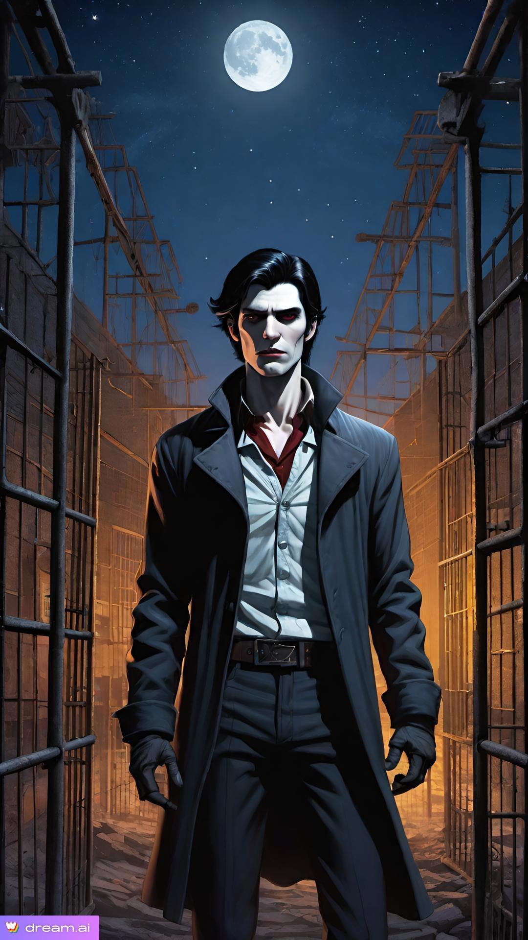 Вторая книга, которая мне досталась по жеребьевке, оказалась настолько интересной и захватывающей, что я ее проглотил за один присест. Она, кстати, тоже про вампиров в футуристическом обществе. Классных сцен в рассказе - море! Я пробовал разные, но результат, который выдавала WOMBO, был далек от того, что я хотел и видел внутренним зрением. В итоге я остановился на одном отрывке, который долго крутил, меняя промпты.