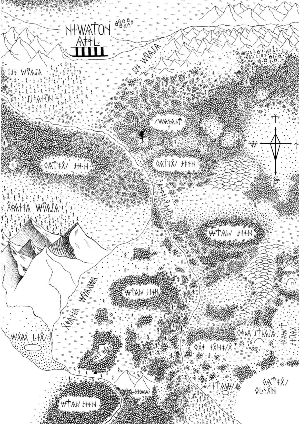 4) Карта местности в двух вариантах (цветной на русском и черно-белый на каэлести)