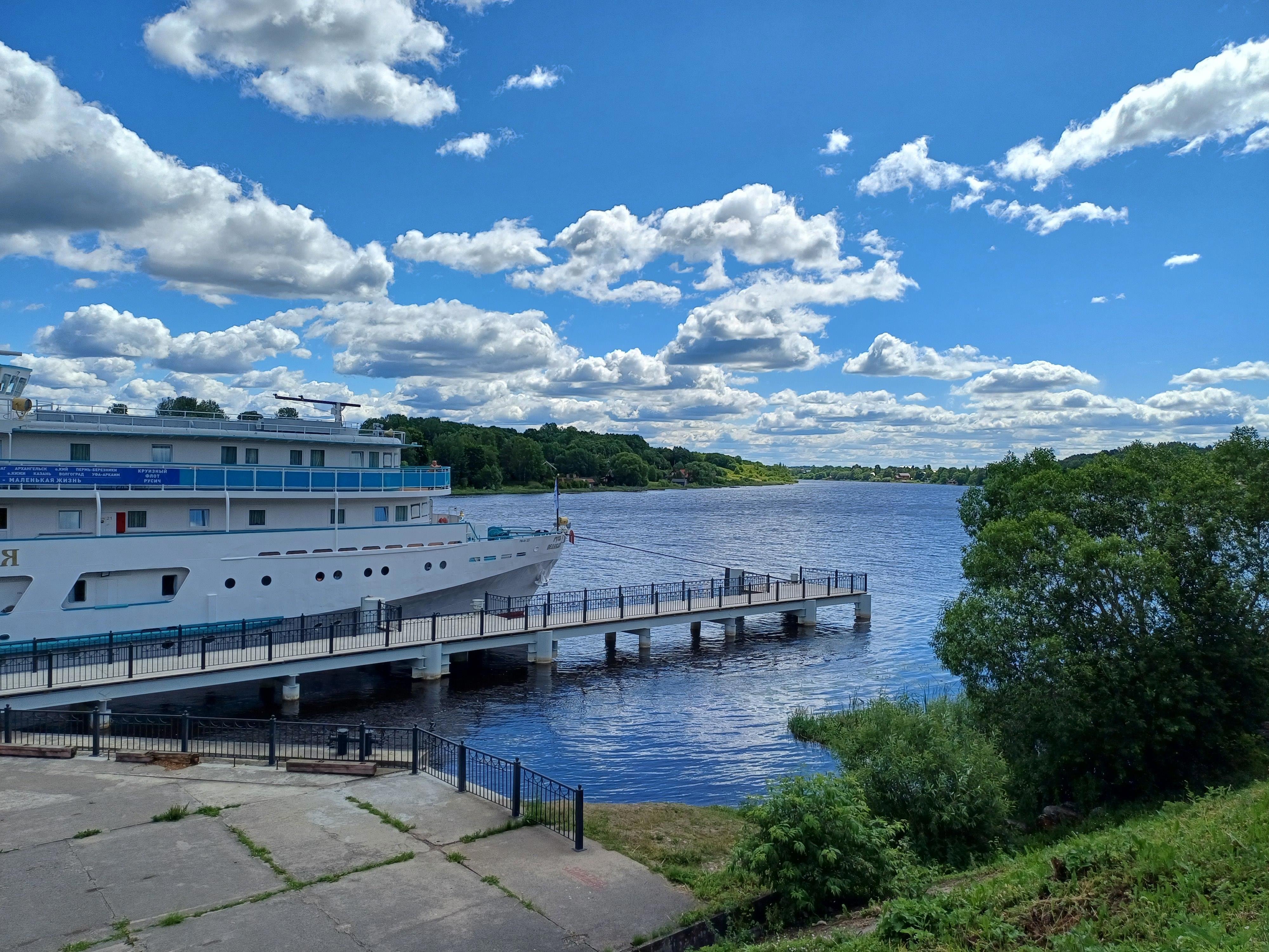 Теплоход, правда, припаркован всего один, а не три, как в пятницу вечером.