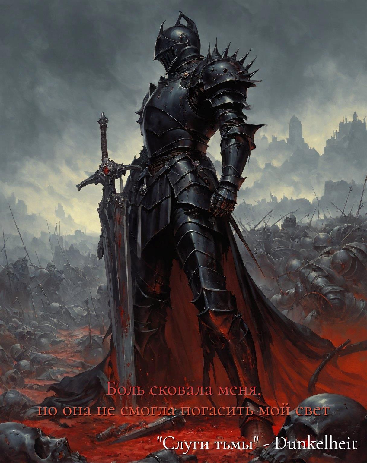 Айрэн смерил чужака пристальным взглядом. Его облачение из чёрного, как обсидиан, металла отливало зловещим блеском, поглощая весь падающий свет. Заострённые наплечники и шлем, усеянный мелкими шипами, говорили о его кровавом ремесле. Под забралом виднелись бурые потеки, похожие на засохшую кровь, чей источник оставался загадкой. Неужели это следы его собственных ран?