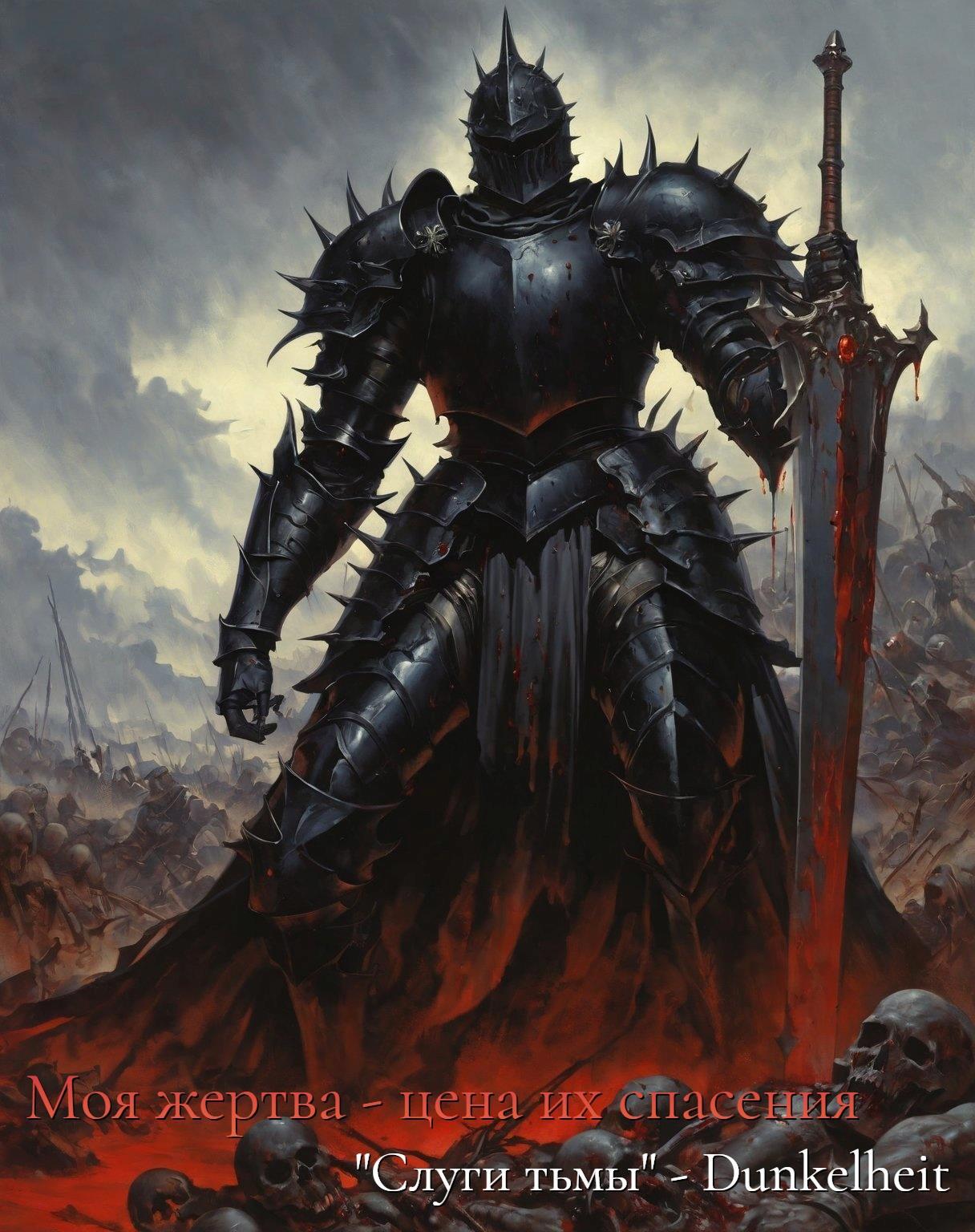 Каждое движение рыцаря сопровождалось противным скрежетом, словно он никогда не снимал и не ухаживал за своей экипировкой. На спине его висел массивный клеймор в ножнах из потемневшей кожи, украшенных заклёпками и черепами мелких животных. От него веяло аурой смерти, словно сам мрак воплотился в этом закованном в железо воине.
