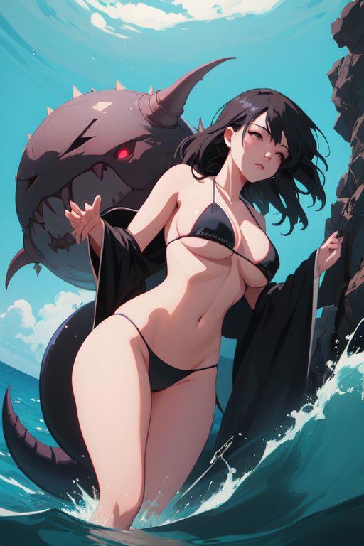 Монстры из космоса/океана и привлекательные девушки в бикини