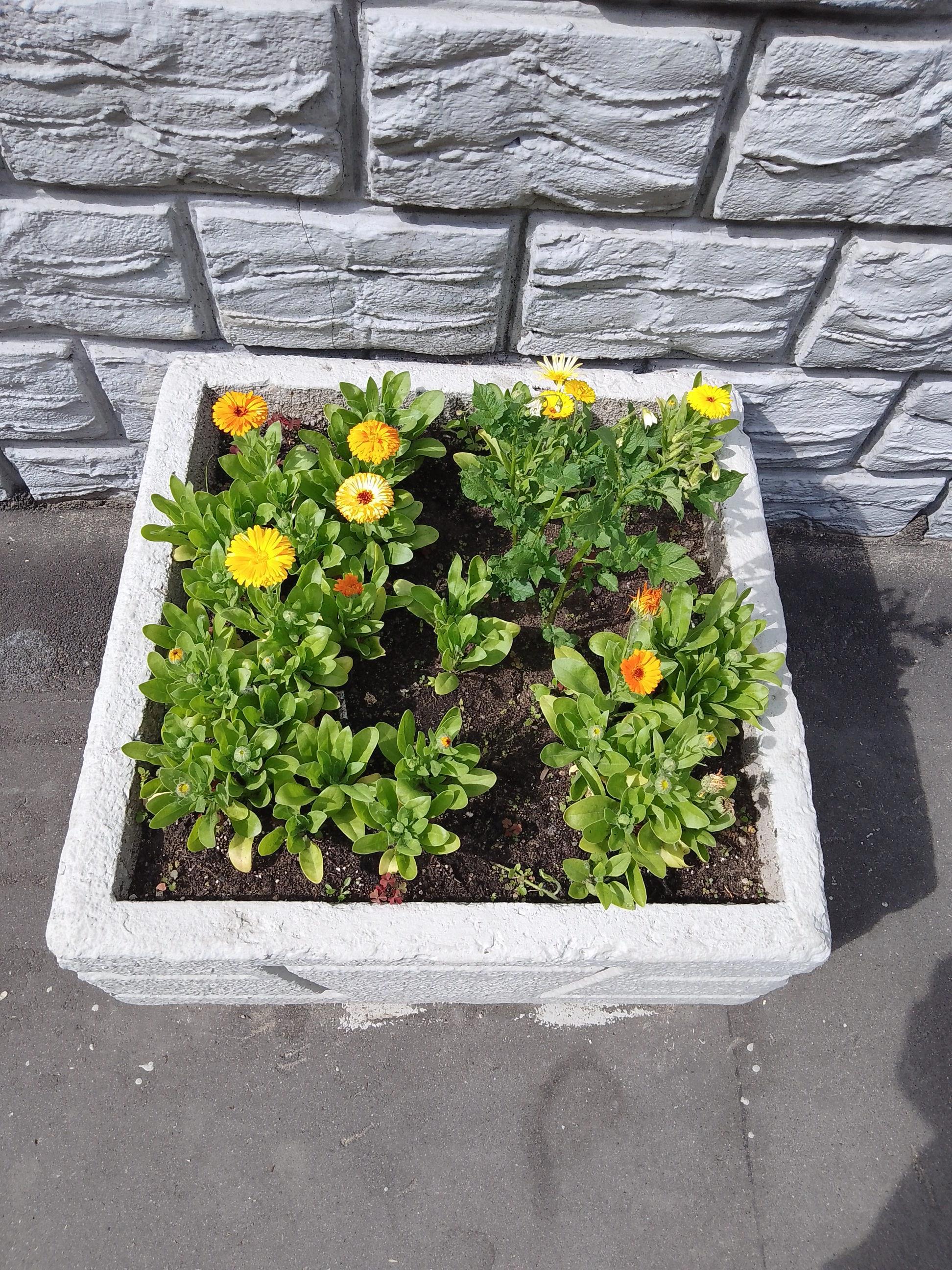 Высадил в пустующую клумбу яркие цветы.