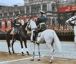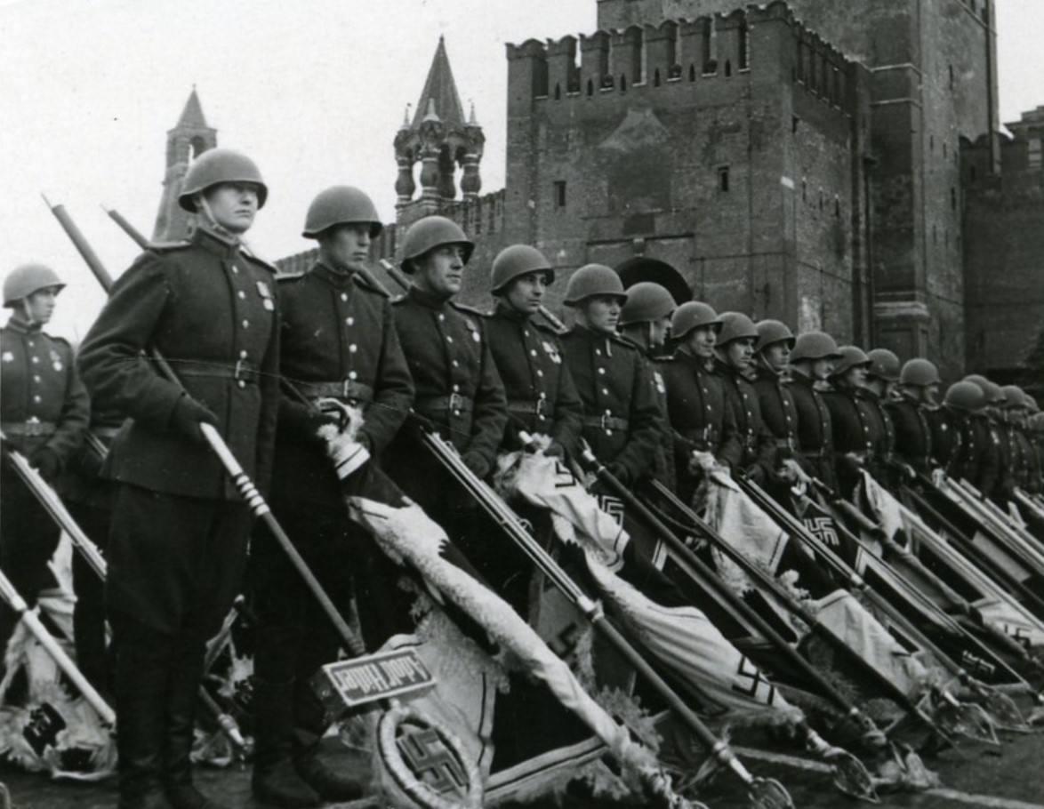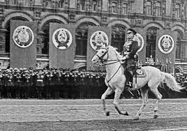 Командовал парадом Маршал Советского Союза Константин Рокоссовский на вороном коне (караковой масти по кличке Полюс), а принимал - Маршал Советского Союза Георгий Жуков на белом (светло-серой масти терской породы по кличке Кумир), на котором выехал ровно в 10:00 на Красную площадь к Мавзолею Ильича с членами Политбюро ЦК ВКП(б) во главе с Иосифом Сталиным на верхней трибуне и взошел на нее.