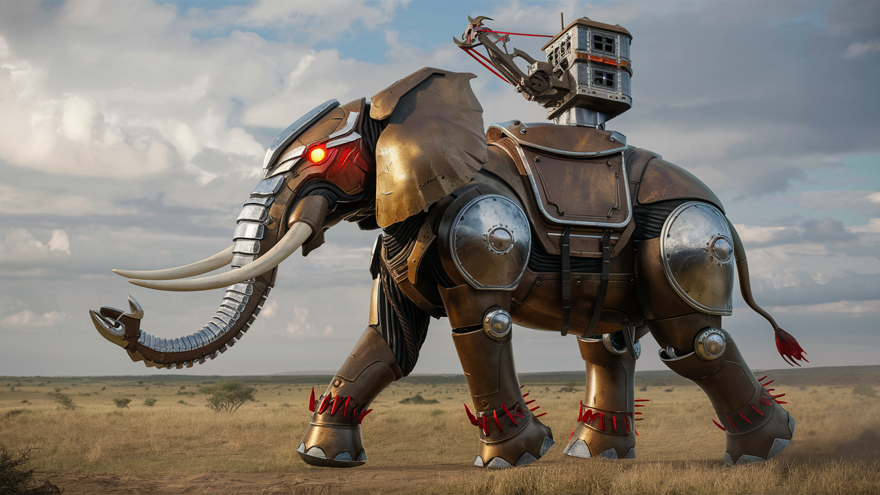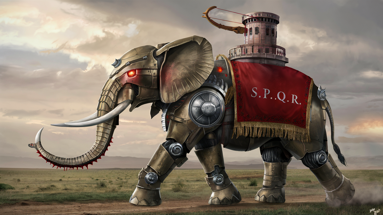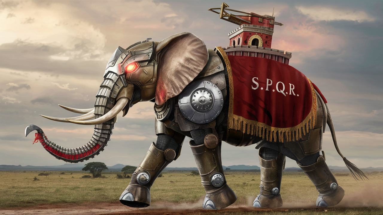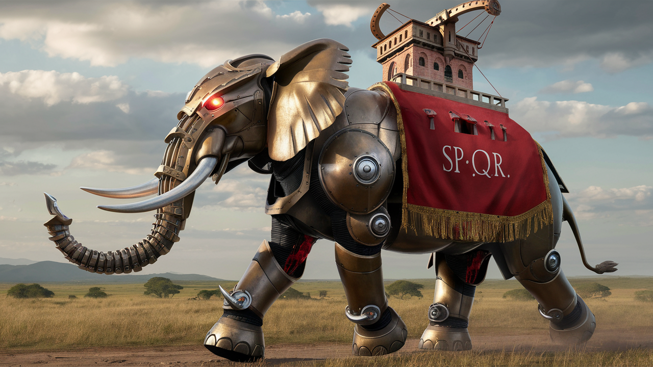 Слоны-роботы на службе Великого Рима (нейронка рисует)