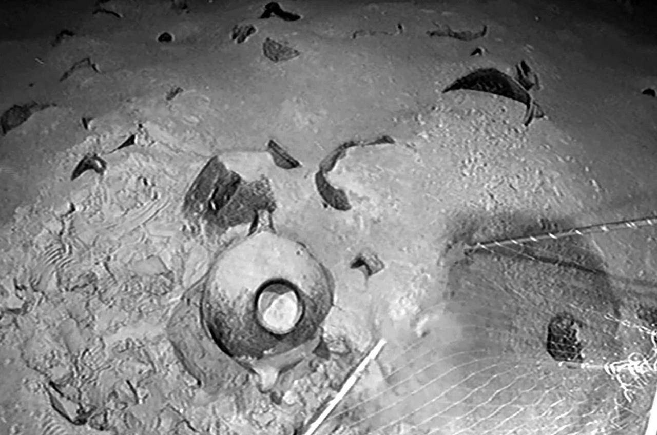 Никаких следов самого судна не показали. Отсюда простой вывод – их и не нашли пока. Даже длину указали приблизительную. Видимо определили по разбросу горшков. Поэтому разговоры о его «парусности» – это вообще пустая болтовня, враньё наглое. Вот, когда покажут… ладно, не паруса, а хотя бы мачту… хотя бы узлы крепления мачты, вот тогда и поговорим. И ни одной секундой раньше. Всё остальное – враньё. Вот фотка «судна» от израильских археологов: