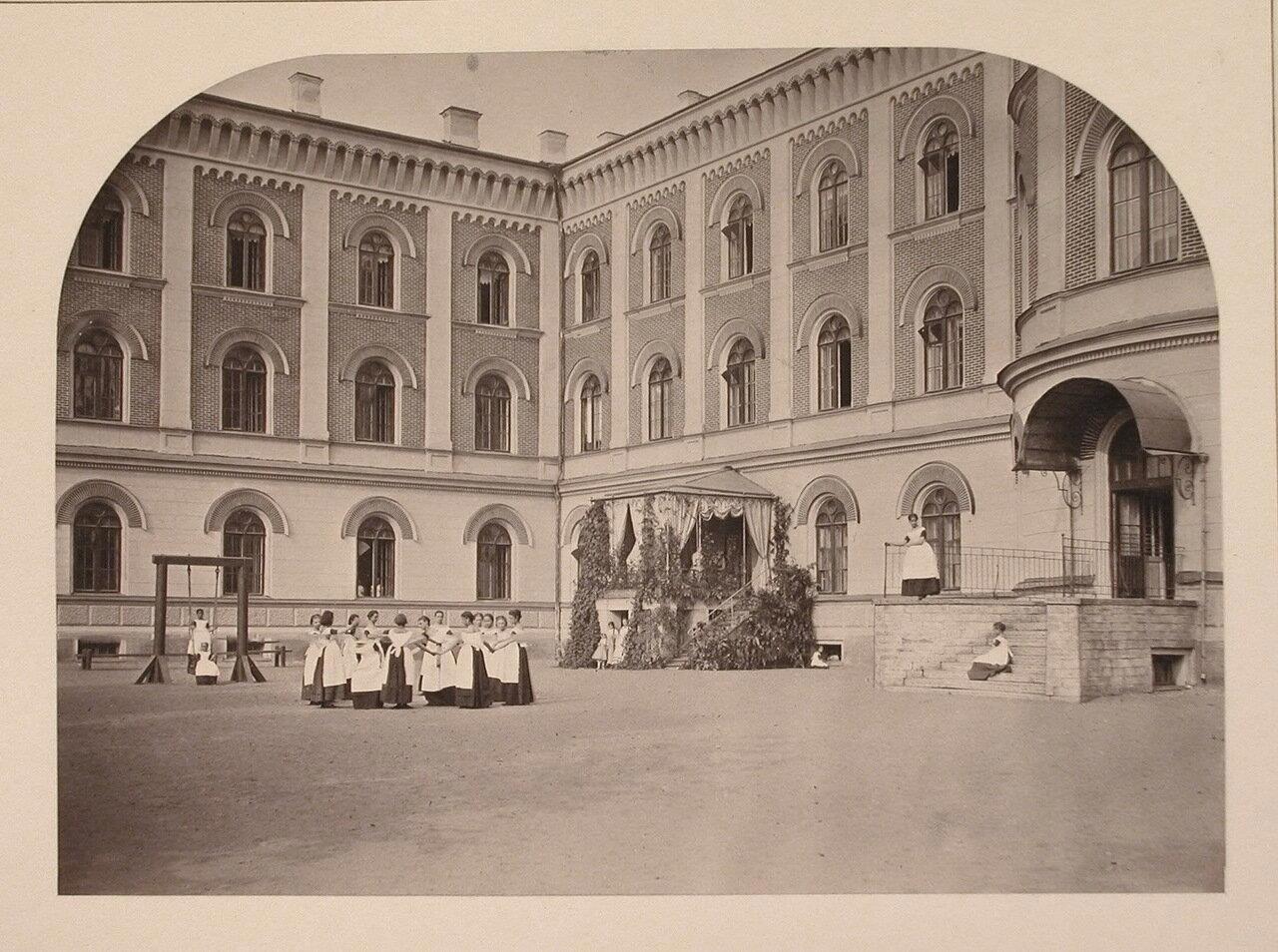 После переезда института в новое здание в том же году 1-е отделение было значительно расширено, количество воспитанниц достигло двухсот сорока (сто сорок пансионерок и сто на казённых вакансиях), тогда как 2-е отделение для солдатского сословия было передано в ведение Императорского человеколюбивого общества. В институт принимались дочери обер-офицеров и штаб-офицеров, а также гражданских чиновников от титулярного до коллежского советника для воспитанниц казённых вакансий. Дочери офицеров, убитых на войне, и полные сироты принимались без баллотирования, а остальные по публичной баллотировке. Общий курс в институте имел семилетний срок, а специальный педагогический класс — трёхлетний срок. Выпускницы педагогического класса института получали звание домашнего учителя и имели право без экзаменов поступать на Высшие женские курсы; выпускницы, окончившие полный курс института с отличием, получали звание домашних наставниц-воспитательниц.