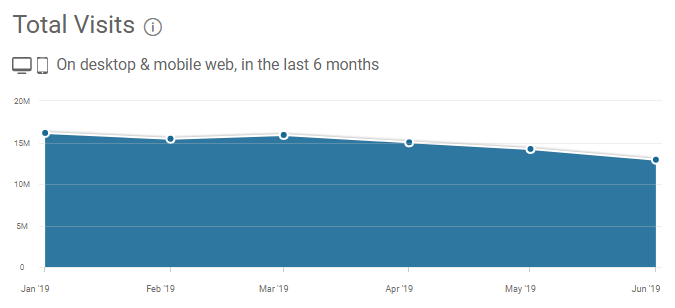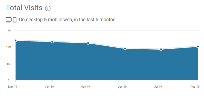 Увы, совсем недавно (8 сентября) статистический сервис SimilarWeb, которым я пользовался, изменил алгоритм подсчёта посещаемости. Когда я начал сравнивать цифры на старых графиках и на новых, сначала подумал, что ошибся и вместо нужных сайтов изучал данные каких-то иных. Однако потом понял, что нет, не ошибся - просто теперь сервис считает посещения по иному. И разница между старыми и новыми значениями в некоторых случаях оказалась очень велика. Например, для самиздата (samlib.ru) она составила почти 30%: по старой методике в июне 2019 году у сайта было 10,2 млн. посещений, а по новой - 7,3 млн. посещений. Разница огромна, выходящая далеко за статистическую погрешность. У "Лабиринта" и "Литреса" ситуация похожа - порталы просто лишили нескольких миллионов посещений.