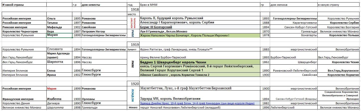 1. Вот для примера часть росписи браков РеИ и в МНМ для первых книг цикла: