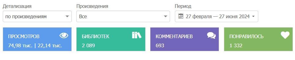 - За четыре месяца мои книги читали в целом 2 564 часа. Это очень лестно и радостно. Но... в этом месяце часов даже меньше, чем в марте! Меня предупреждали, что так будет с приобретением КС, но ох. Показатели будто укоряют, что я делаю мало, кучу времени трачу на ерунду, вместо того, чтобы воплощать задумки в буквы и предложения.