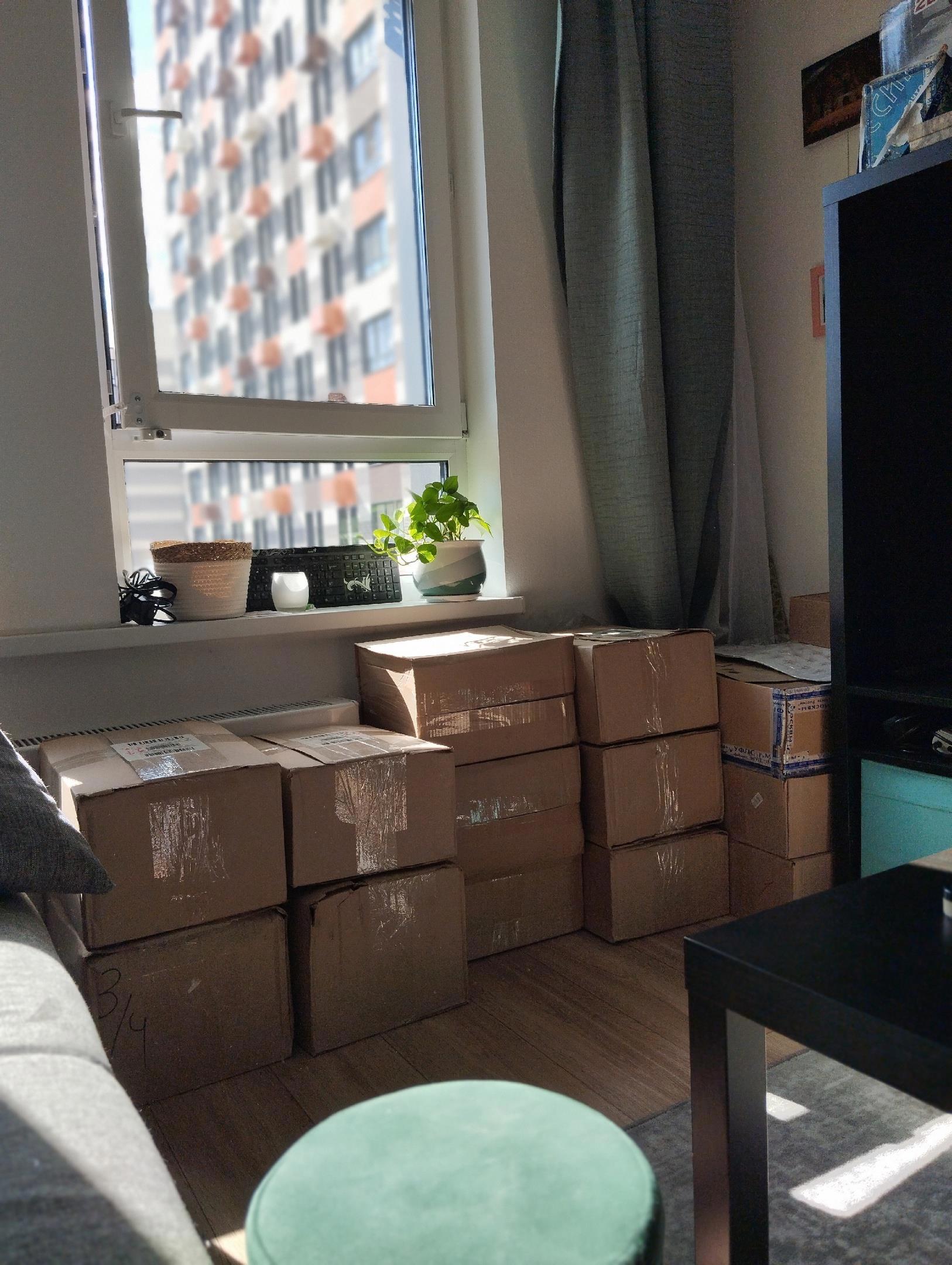 И вот вам ещё фотка посмеяться. Эта батарея коробок - всё так же "Йага", приехавшая ко мне на подпись из чата закупок.