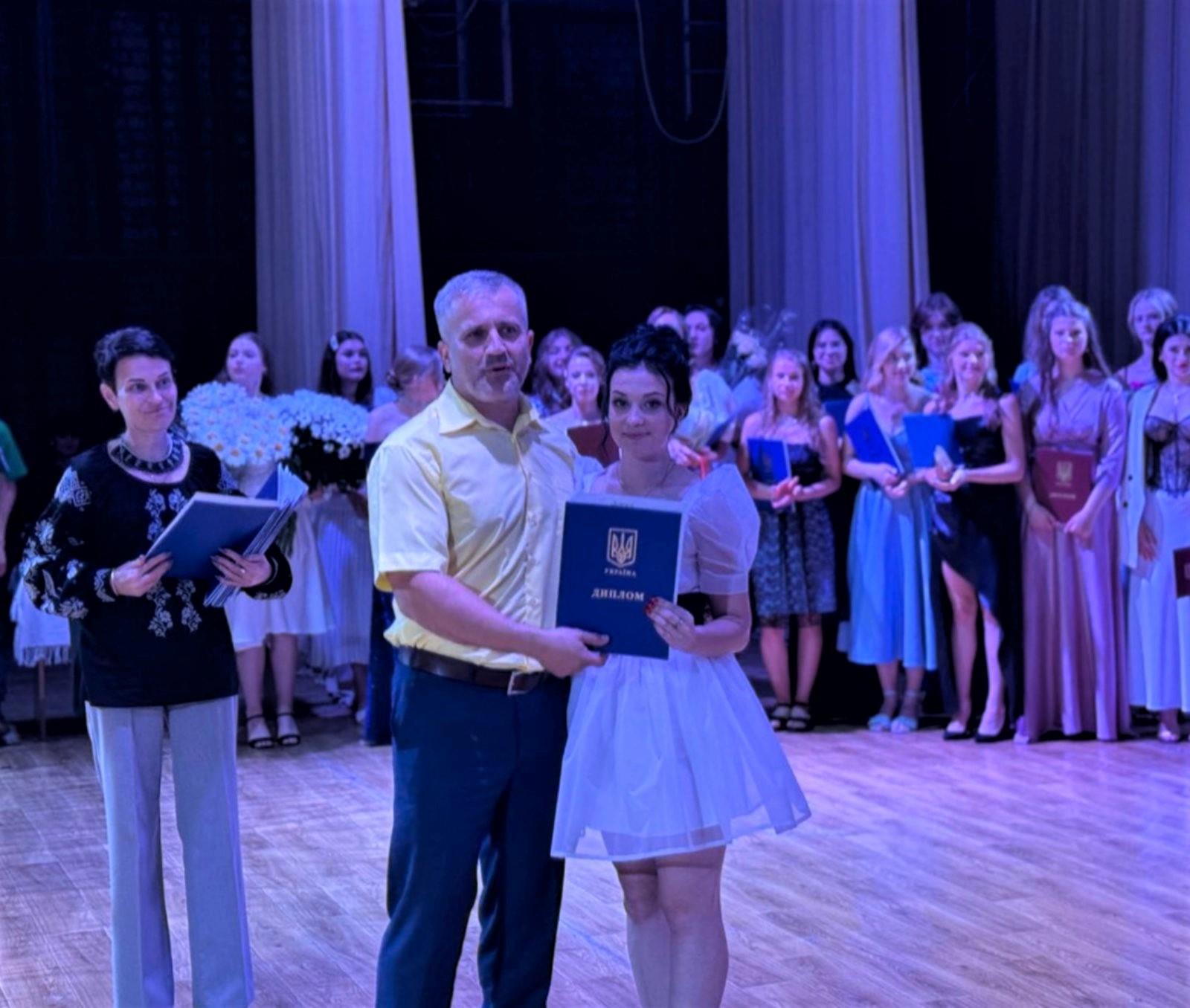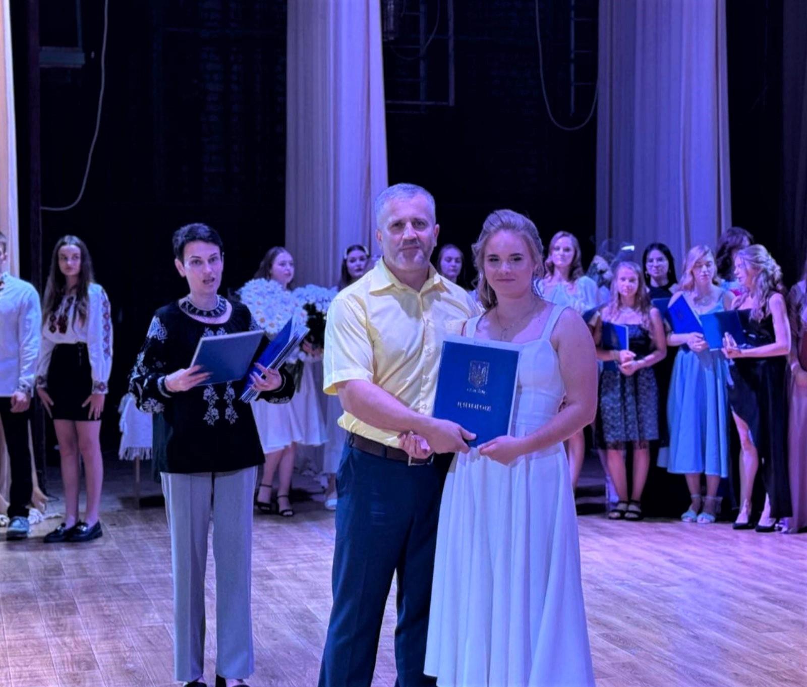 Выпускник Давид, мамин пирожочек. Очень хороший мальчик, очень добрый, очень тупой и совершенно беспомощный, я не знаю, как он будет жить на свете, он даже в журнале себя найти не может. Слава богу, что это не мой ребёнок, я бы с ума сошла.