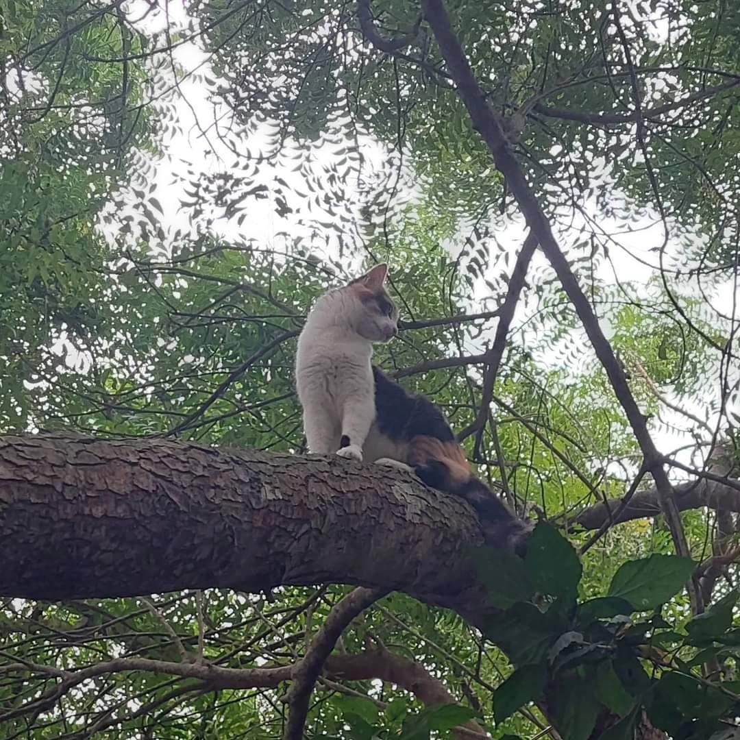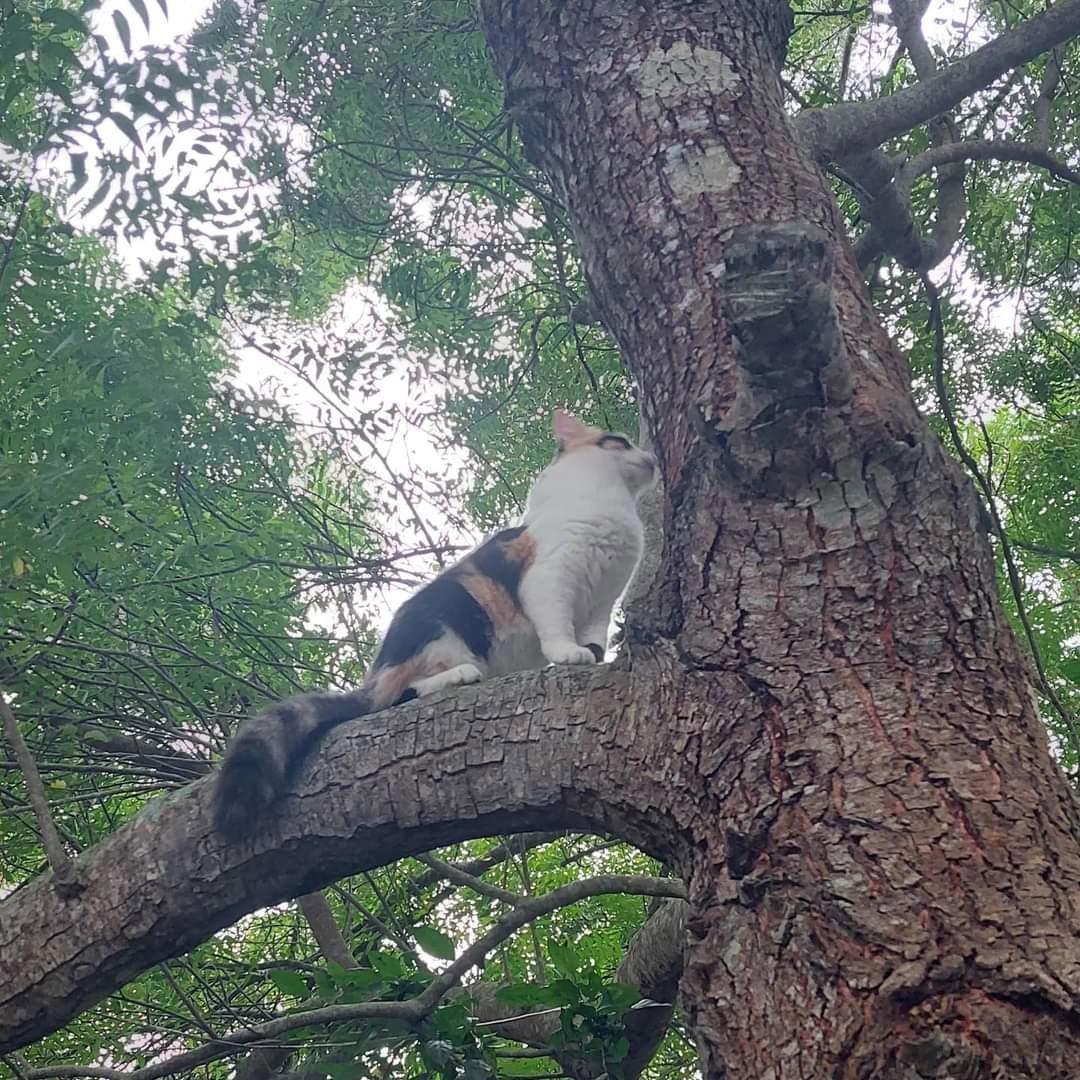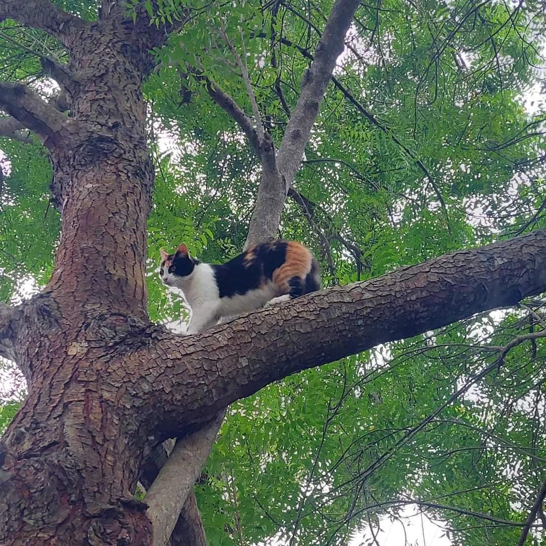 А птичий смотрящий бдит. Стрекотать и прыгать с ветки на ветку начал сразу, как кошка решила полазить.