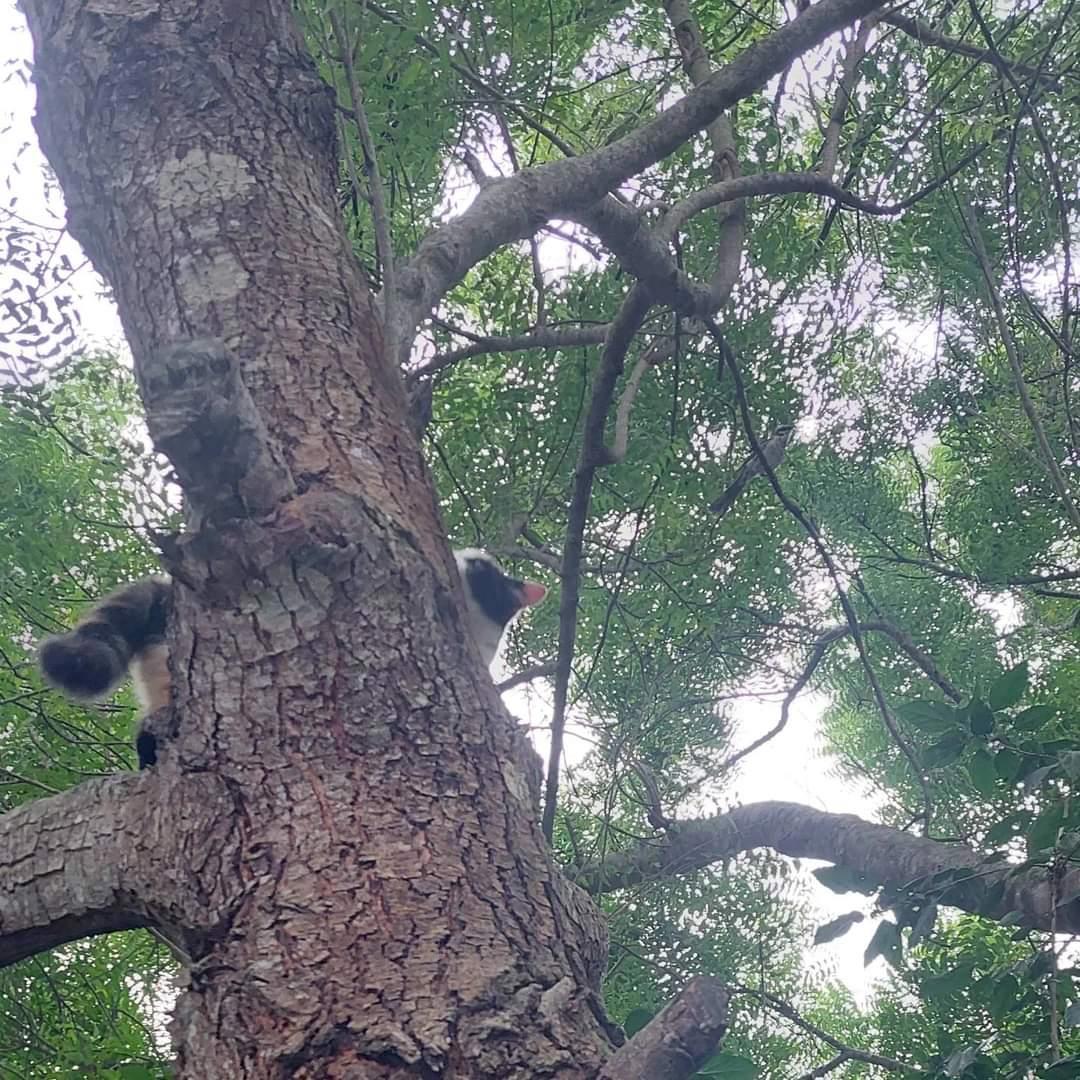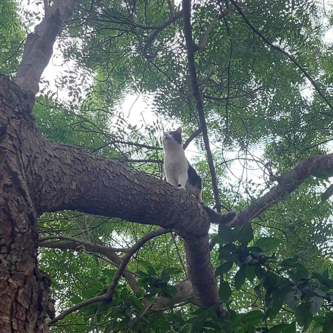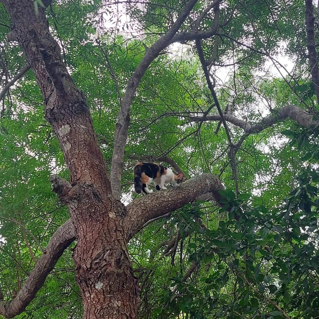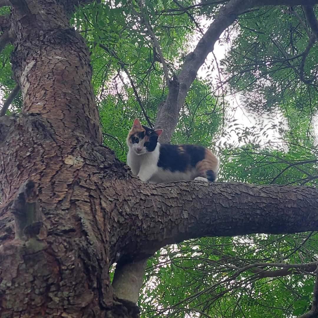 А птичий смотрящий бдит. Стрекотать и прыгать с ветки на ветку начал сразу, как кошка решила полазить.