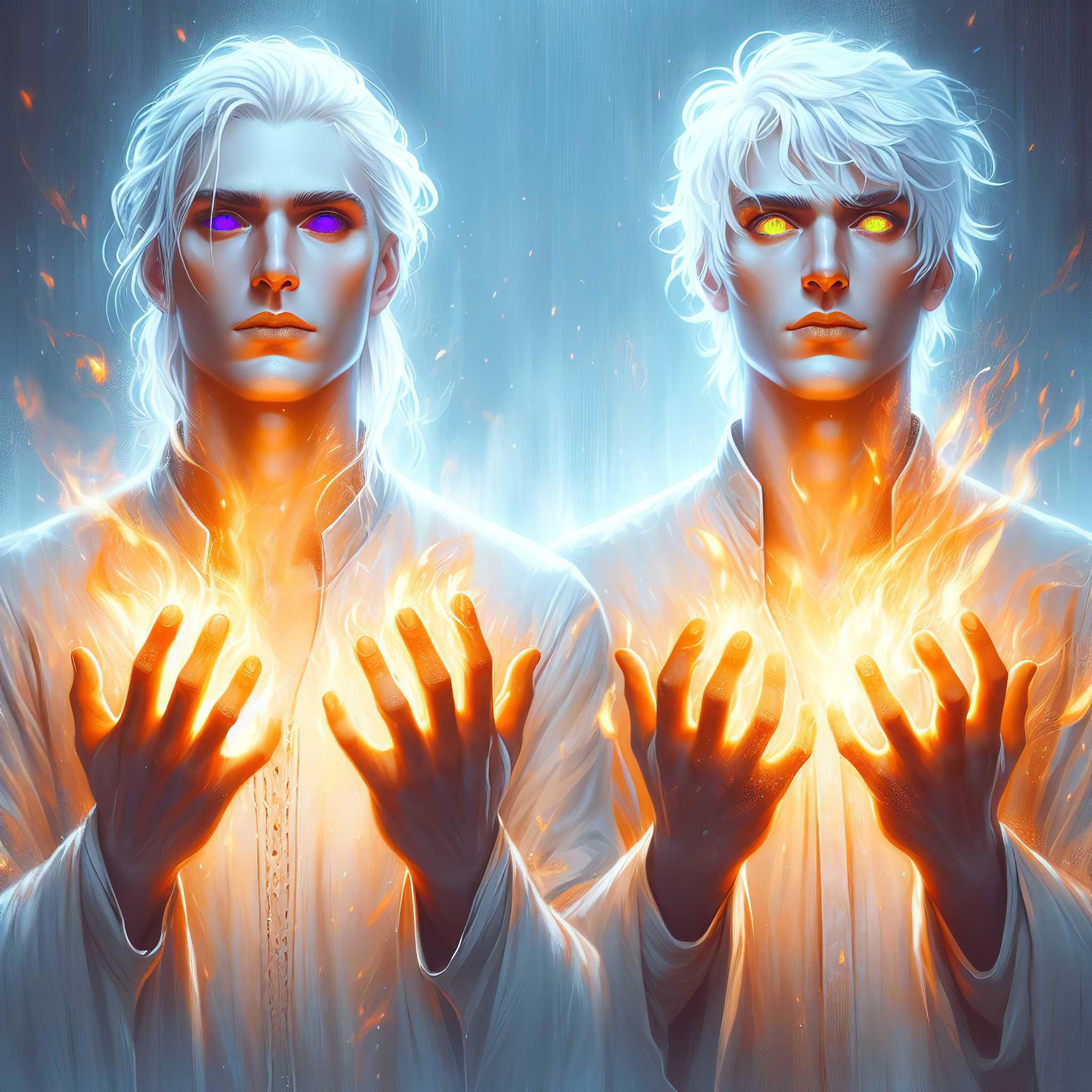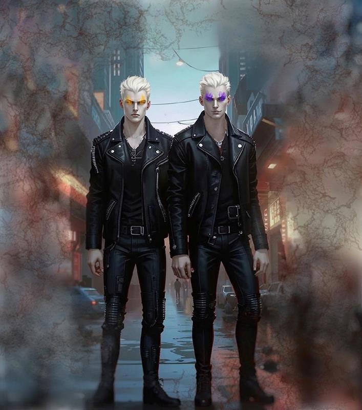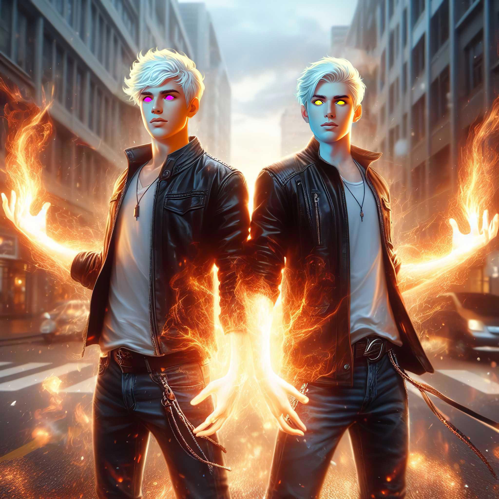 Вот к этому отрывку из романа Ловушка Силы я получила аж три иллюстрации! Одну конкурсную и две внеконкурсных. Теперь у меня целая коллекция близнецов с фиолетовыми и оранжевыми глазами.