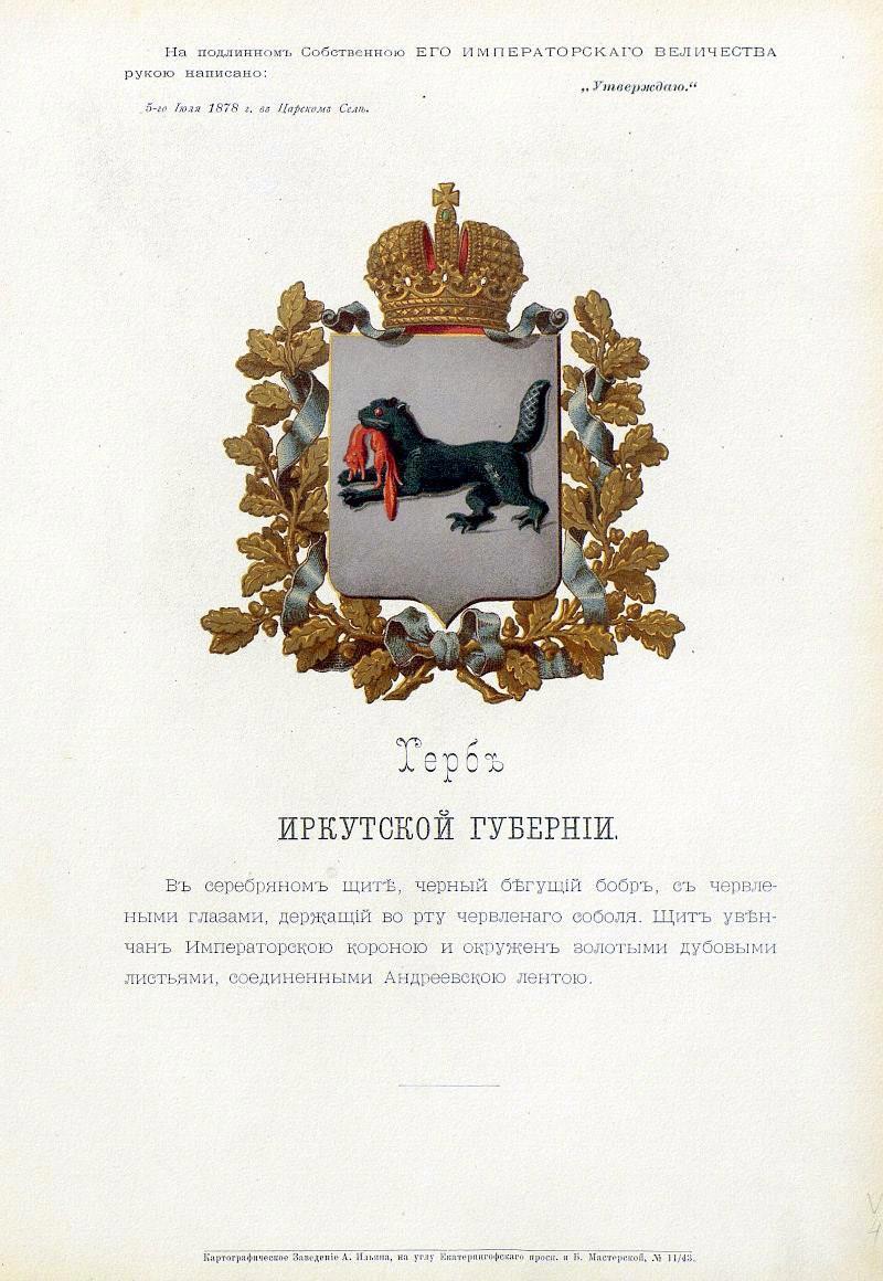 На очередном утверждении герба в столице империи в сибирском слове бАбр неизвестным чиновником была "исправлена" ошибка. И на гербе должен был появиться бобёр, держащий в зубах соболя... Но иркутские художники поступили дипломатично: бобра рисовать не стали... но и тигра - тоже! Вместо этого они создали новое мифическое животное "бАбр" - чёрное, красноглазое, с бобровым хвостом, мощными когтями и рыжим соболем в зубах.