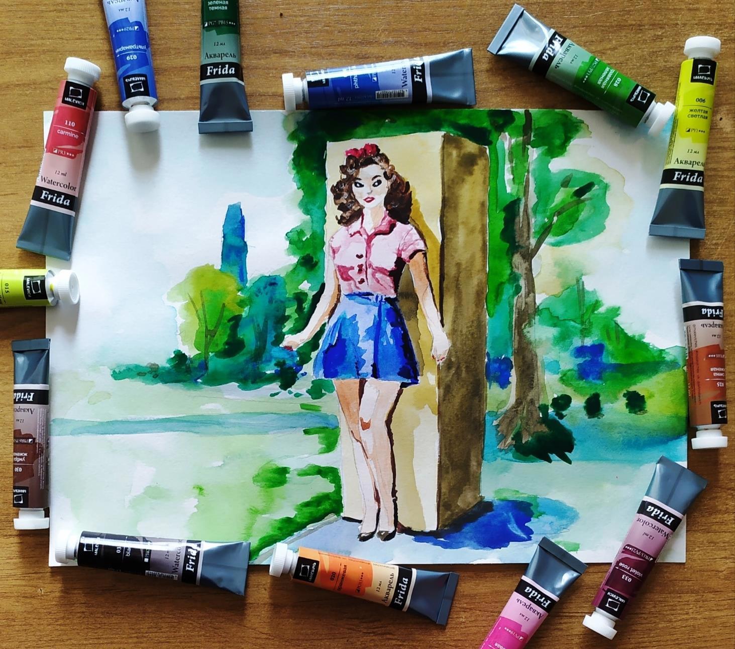 Актеры (живая и живой в картоне) получились почти такими, как в акварели: