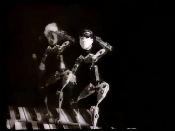 Кадр плохой, но это 46 год. Матрос танцует яблочко на пианино. Если поищете найдете и увидите, как с матроса спадает одежда и он оказывается созданием из скрепок. В инете он обозван: