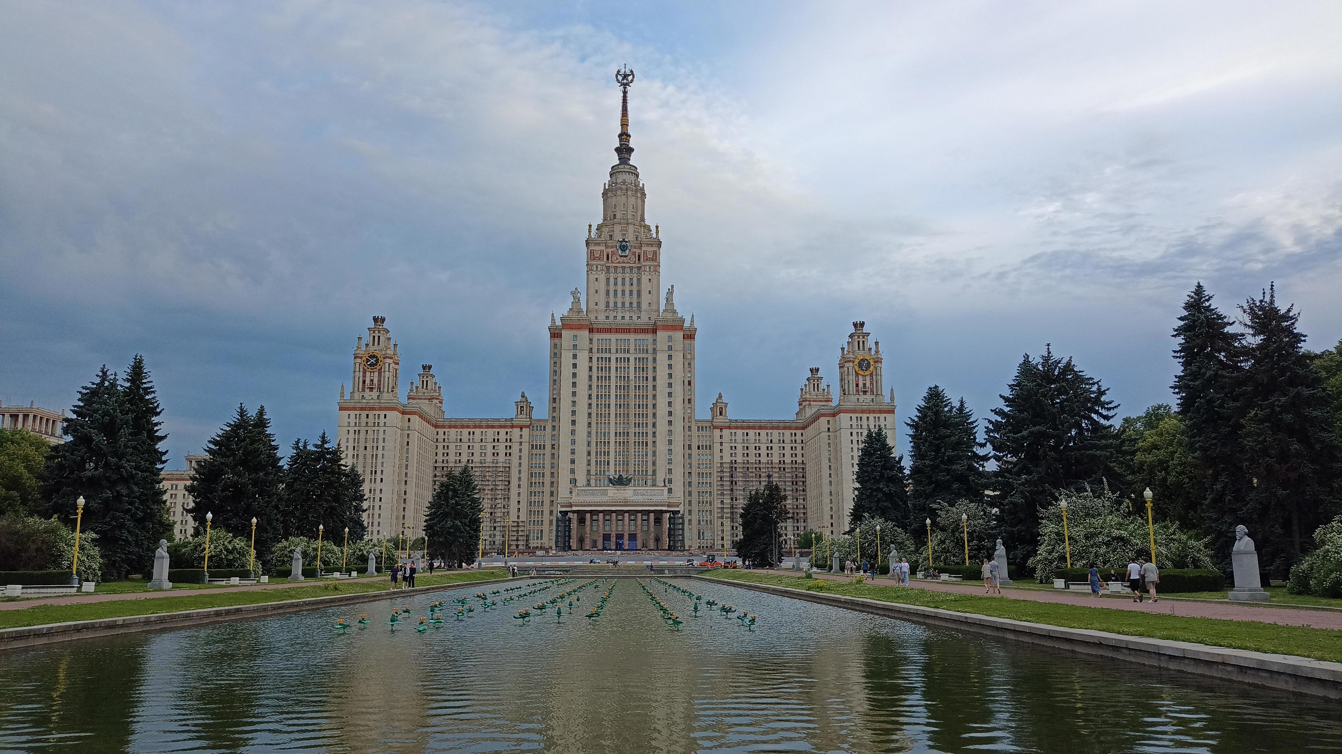 МГУ, кстати. вроде еще не хвасталась фоткой. Но в жизни университет меня подразочаровал, по крайней мере окружающим видом — сейчас вокруг ремонт, свалка и фиг там пройдешь по боле-менее нормальным тропинкам. Еще в шоке от того, какое у них большое расстояние между корпусами. Отдельно главный, отдельно био (химбио?), отдельно физика и т.д. Я очень надеюсь, что у студентов нет нужды бегать между парами из корпуса в корпус.