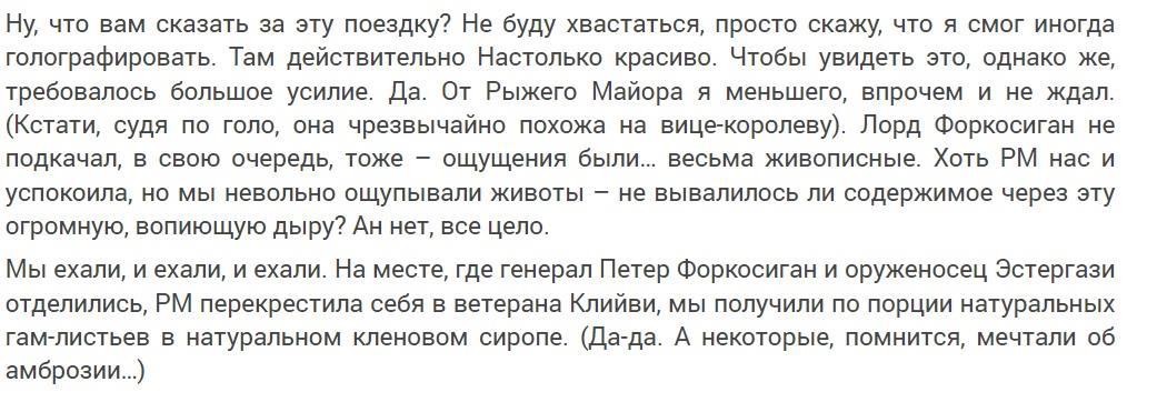 Руслан Бирюшев предложил совершенно серьезный флэшмоб на тему "герой побеждает напряжением всех своих сил" и я немедленно вспомнила, что в старом-престаром фанфике по Буджолд у меня таки есть такой момент.