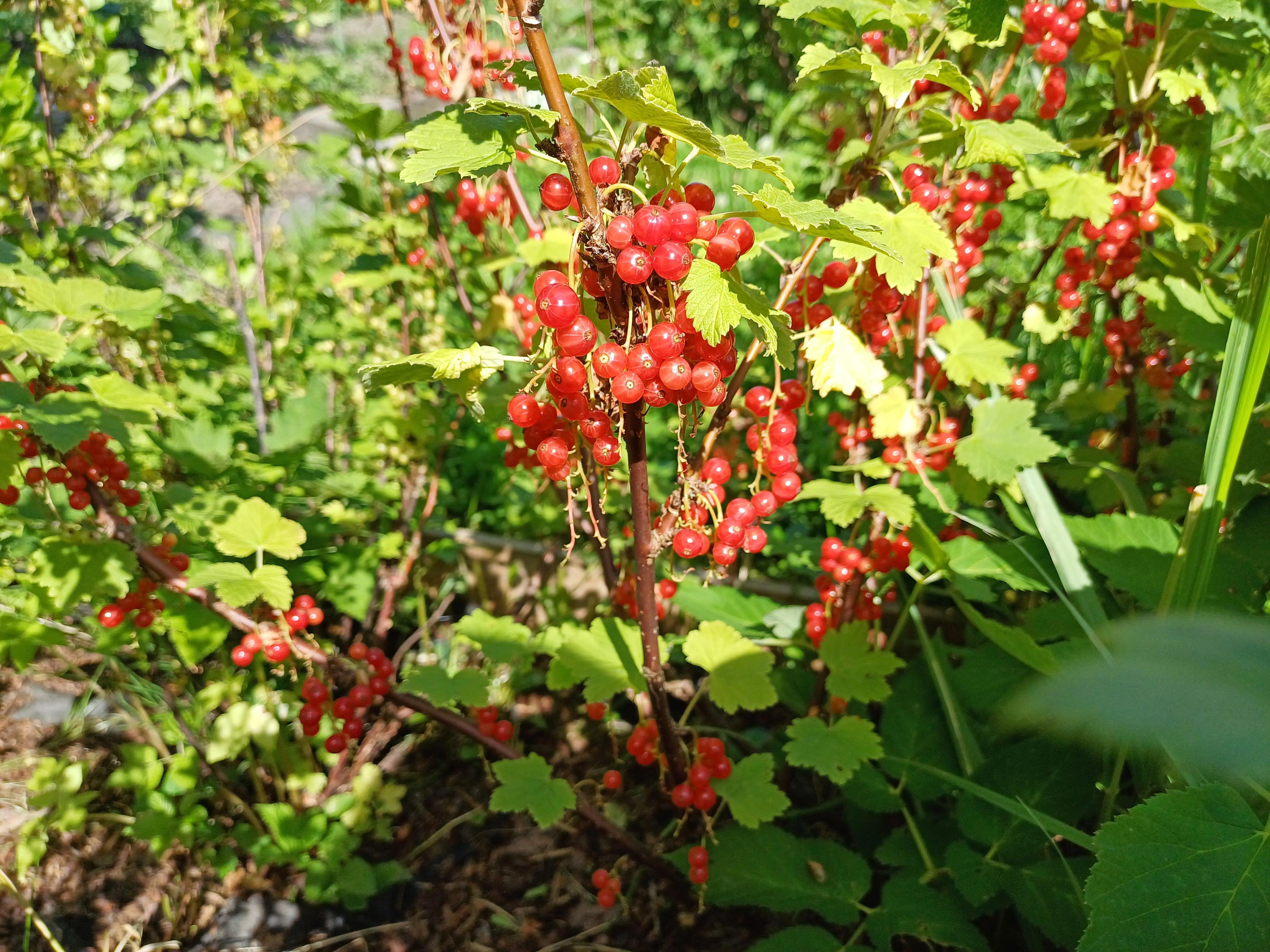 Красной смородины неимоверно много. Впервые накрыли ее от птиц, как клубнику: