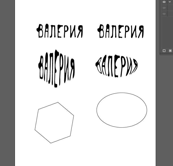 Создадим фигурный контур и объекты для получения фигуры под контур. Это может быть не только текст. Вот видите, и можно несколько. Я их сгруппировал.