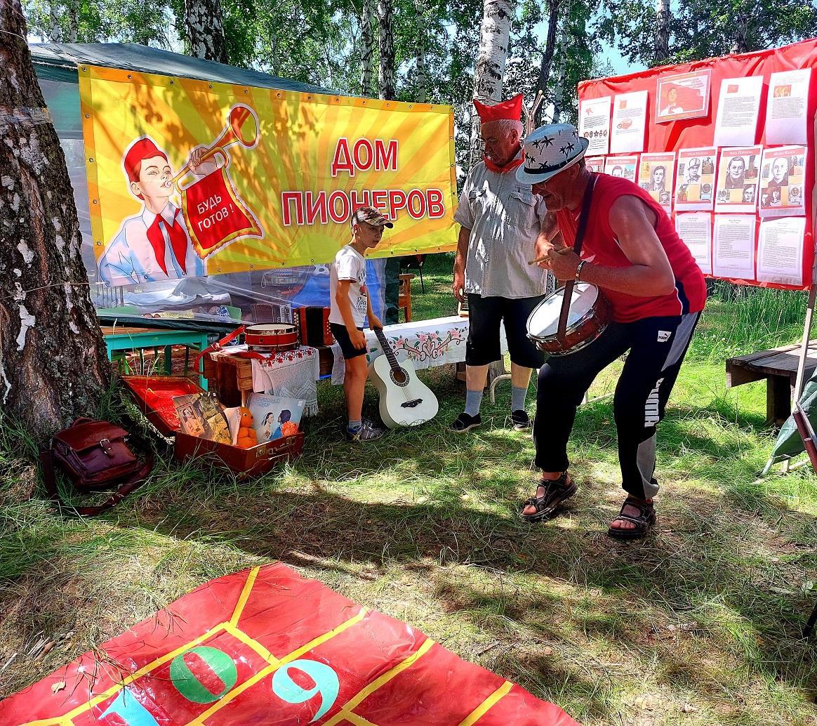 ...в пионерском уголке можно вспомнить детство и постучать в барабаны, подуть в горн...