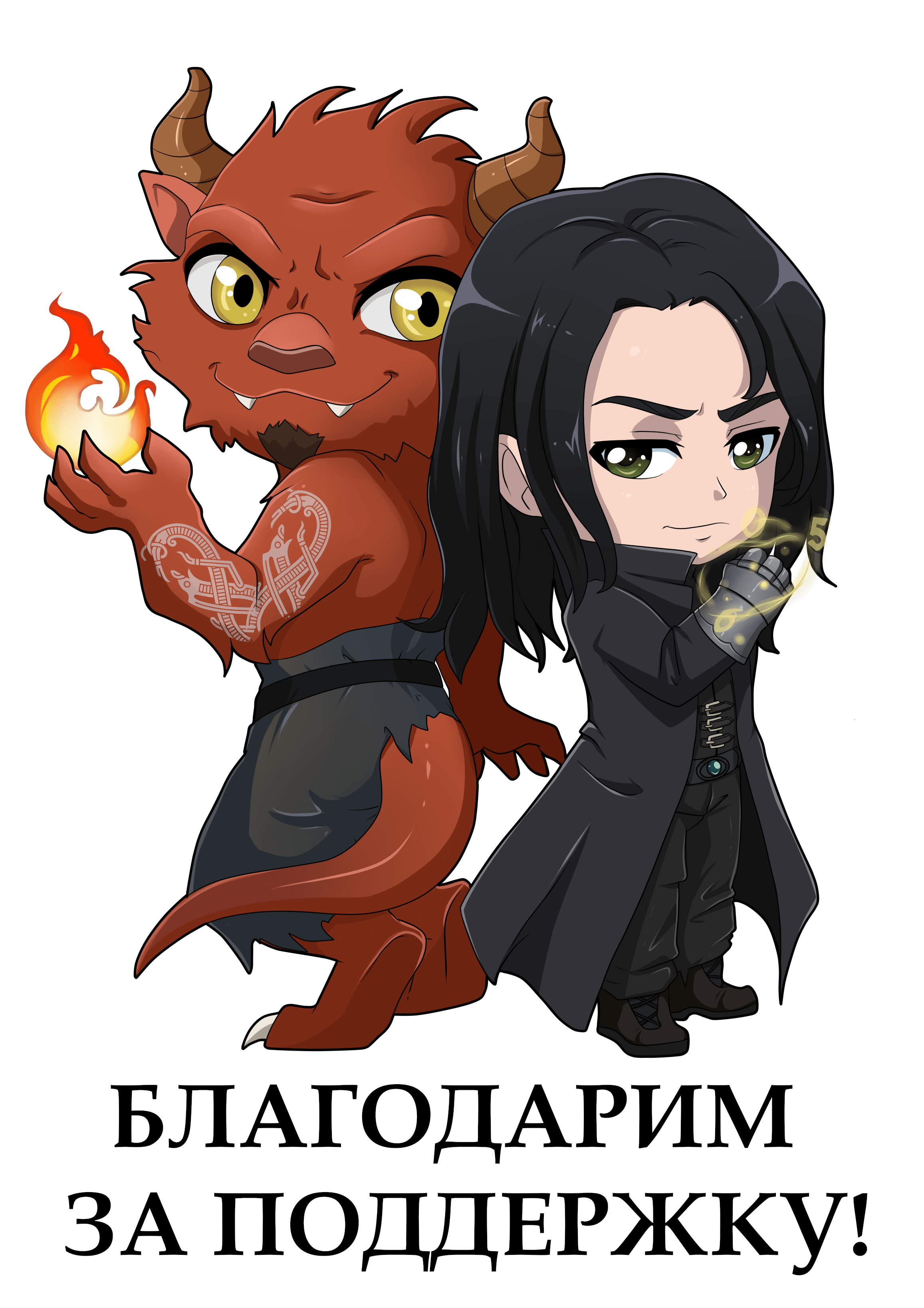 Читатели, подарившие циклу Нулевой Атрибут наград от 500 рублей и выше, получат совместную благодарность главного героя и его демона. Так же этот стикер могут получить активные читатели, которые регулярно поддерживают автора своим мнением в комментариях. Каждый случай достойности читателя автор определяет в индивидуальном порядке.