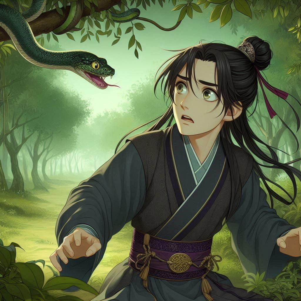 Ну и еще несколько картинок к предыдущей главе. Там на гг чуть змея не напала, и когда попыталась сделать иллюстрацию, порой получались вот такие слегка анимешные эмоции: