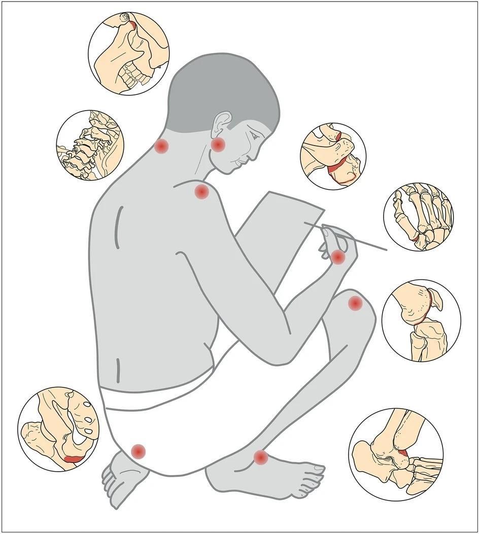 У писцов, составлявших привилегированное меньшинство, умевших читать и писать в 2700-2180 гг. до н. э., наблюдалась более высокая частота дегенеративных изменений в суставах, позвоночнике и челюстях по сравнению с их современниками.