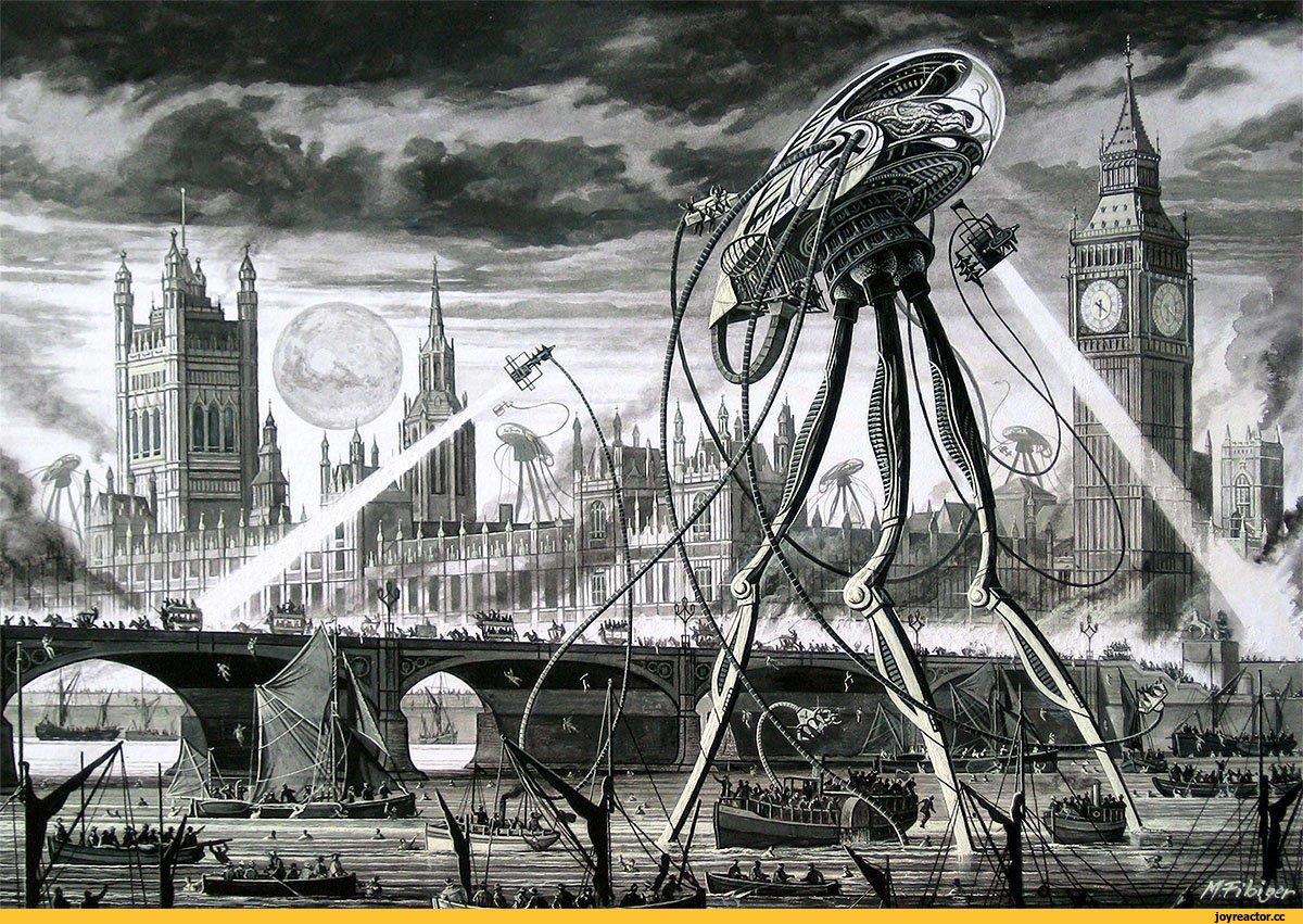 В 1897 году в британском журнале Pearson’s Magazine и в американском The Cosmopolitan была опубликована «Война миров» Герберта Уэллса, к этому моменту уже известного писателя, успевшего выпустить несколько бестселлеров. В новой книге знаменитый фантаст описывал, как марсиане высаживаются на Землю, чтобы уничтожить человеческую цивилизацию. К теме войны Уэллс обращался впервые, хотя более актуальной темы в этот период в британской литературе не существовало. Это была эпоха невероятной популярности «литературы о вторжении»: книжные магазины были заполнены романами о том, как какая-нибудь европейская страна (чаще Германия, милитаризация которой невротизировала современников) вторгается в Англию и без проблем захватывает ее. По большей части целью этих произведений было убедить британцев в необходимости нарастить обороноспособность страны. В романе Уэллса действие тоже разворачивалось в современной Англии, но враг выглядел неожиданно, что переводило популярную тему на новый уровень.