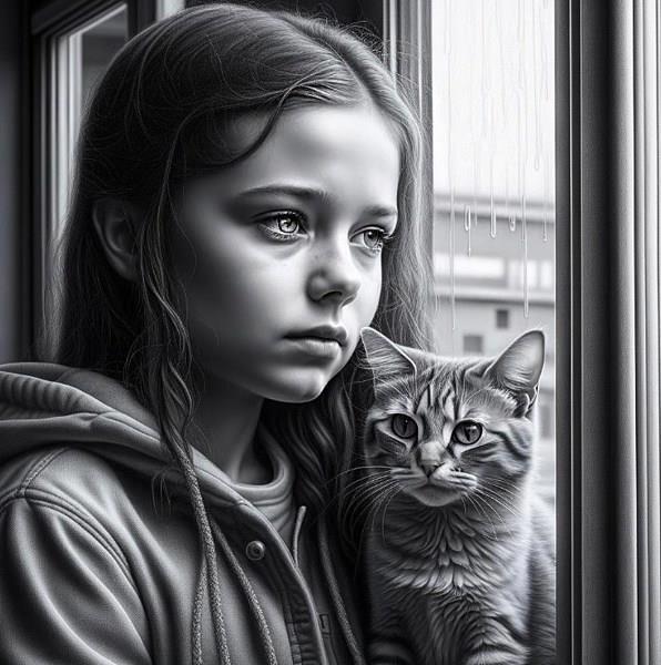 Человек и кошка плачут у окошка