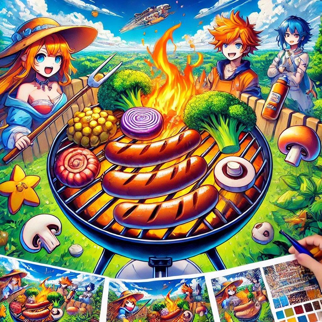 Автор: Мария ЧайкинаЛето, время шашлыков, пикников, барбекю... Вот мы недавно тоже жарили вкусняшки во дворе у друзей. И подумала я, как совместить шашлыки, книжные жанры и нейросети и попросила Dalle погенерить картинки в разных жанрах на тему нашего барбекю.