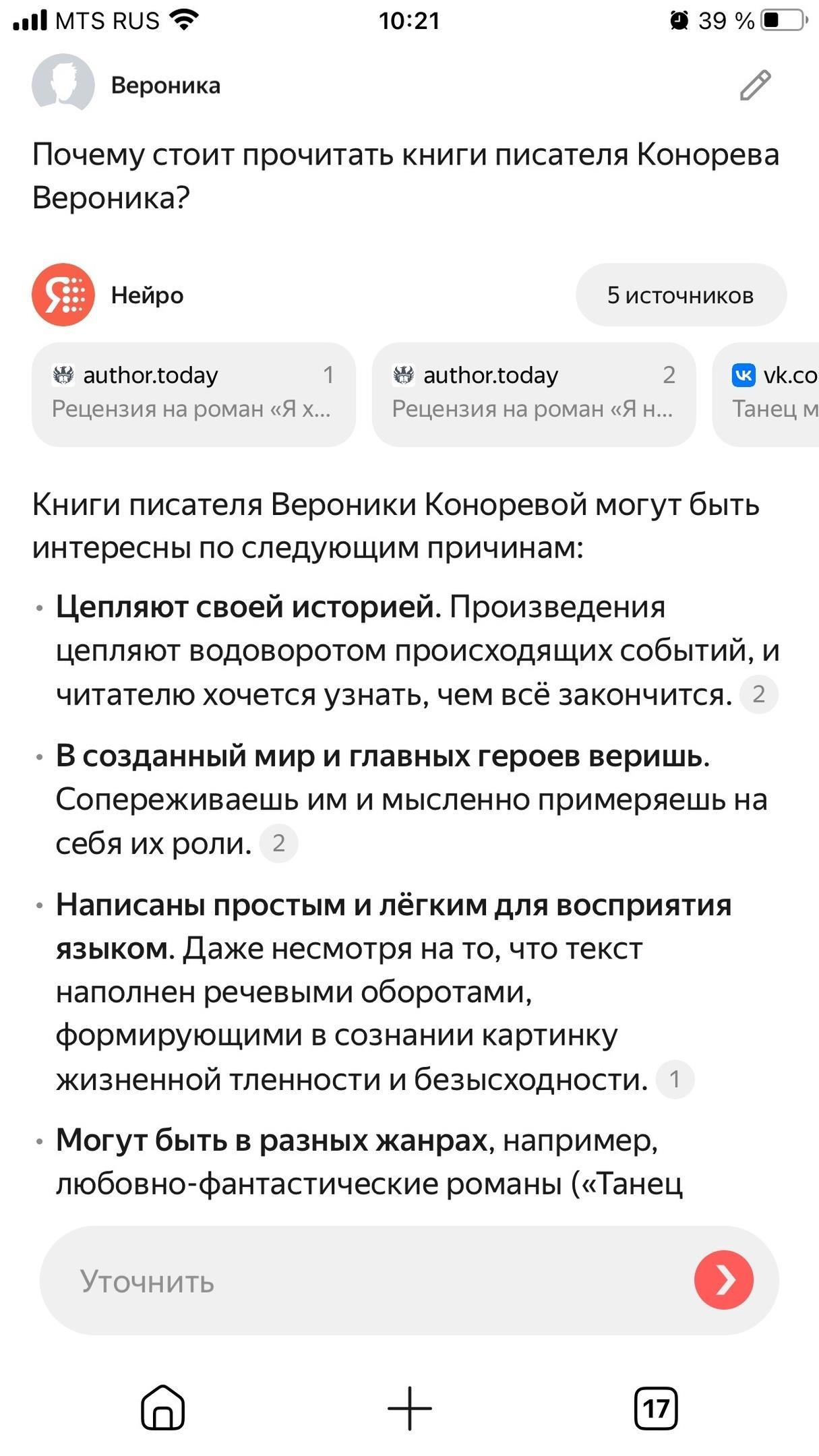 Автор: Конорева ВероникаСегодня листая ленту блогов натолкнулась на пост Алексея Вязовского "Протестировал новый Нейро от Яндекса" https://author.today/post/523208 и стало вдруг очень любопытно, а что сеть скажет о моих работах.