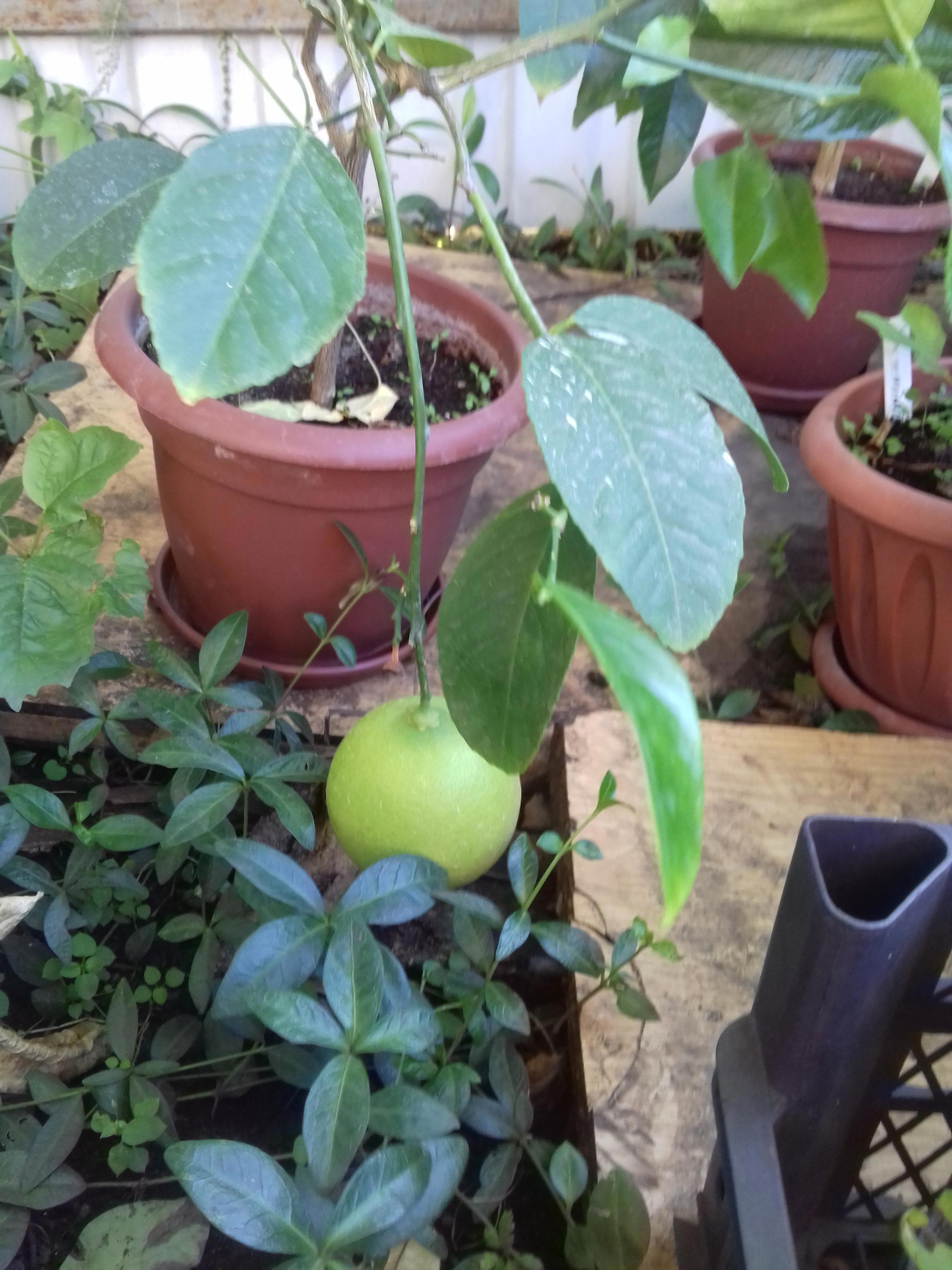 А этот лимон в горшке разродился единственным плодом, таким довольно увесистым лимончиком. Мы на лето горшки на дачу вывозим, чтоб позагорали
