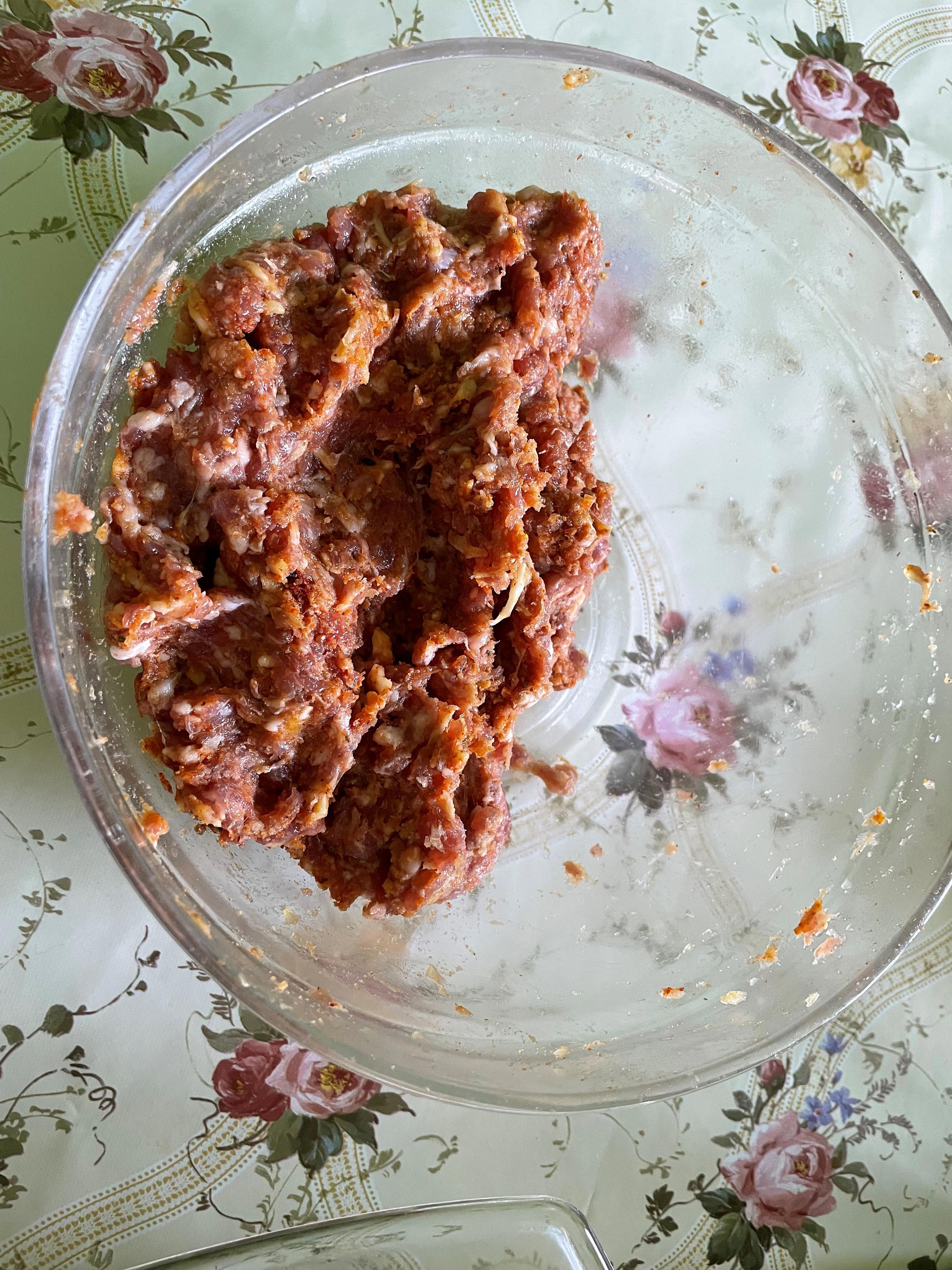 В этот раз решил не добавлять в фарш яйцо и горчицу.