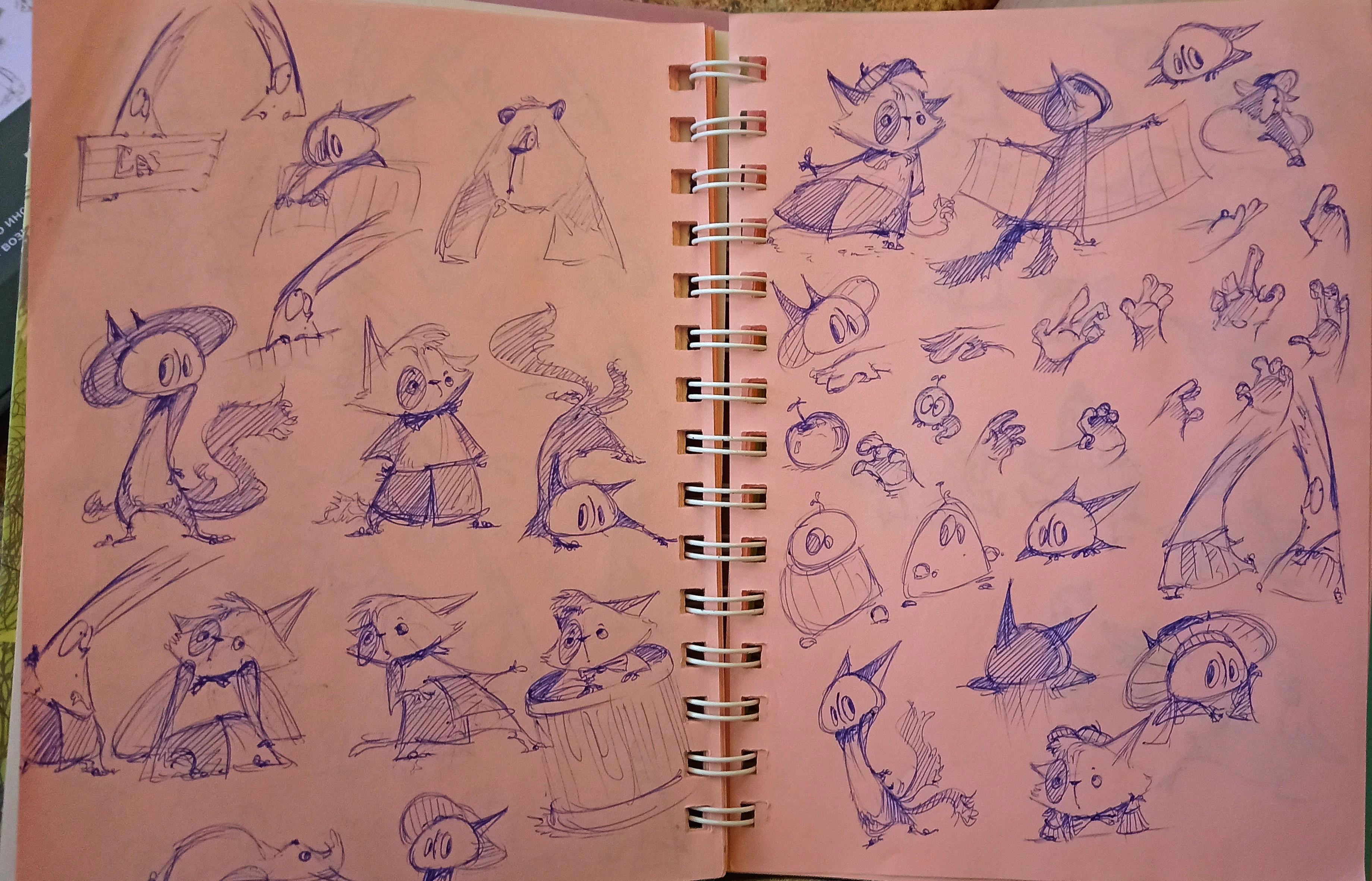 Часть песцовых спряталась в скетчбуках. Но они удерживают страницы хвостами и не дают себя сфотографировать. Удалось оттяпать пару страниц