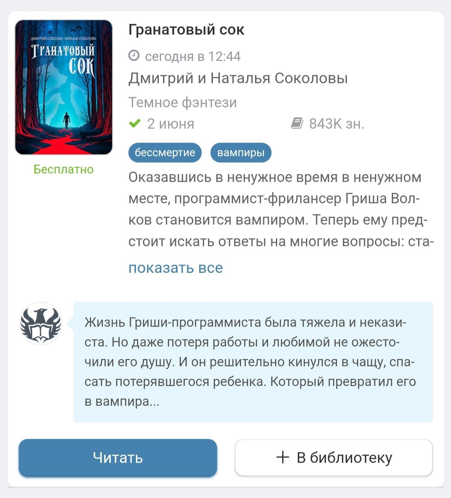 И вот, теперь наши вампиры красуются в официальной подборочке. А какой классный логлайн первой главы нам написал редактор! Чётко и по делу - круче, чем аннотация!