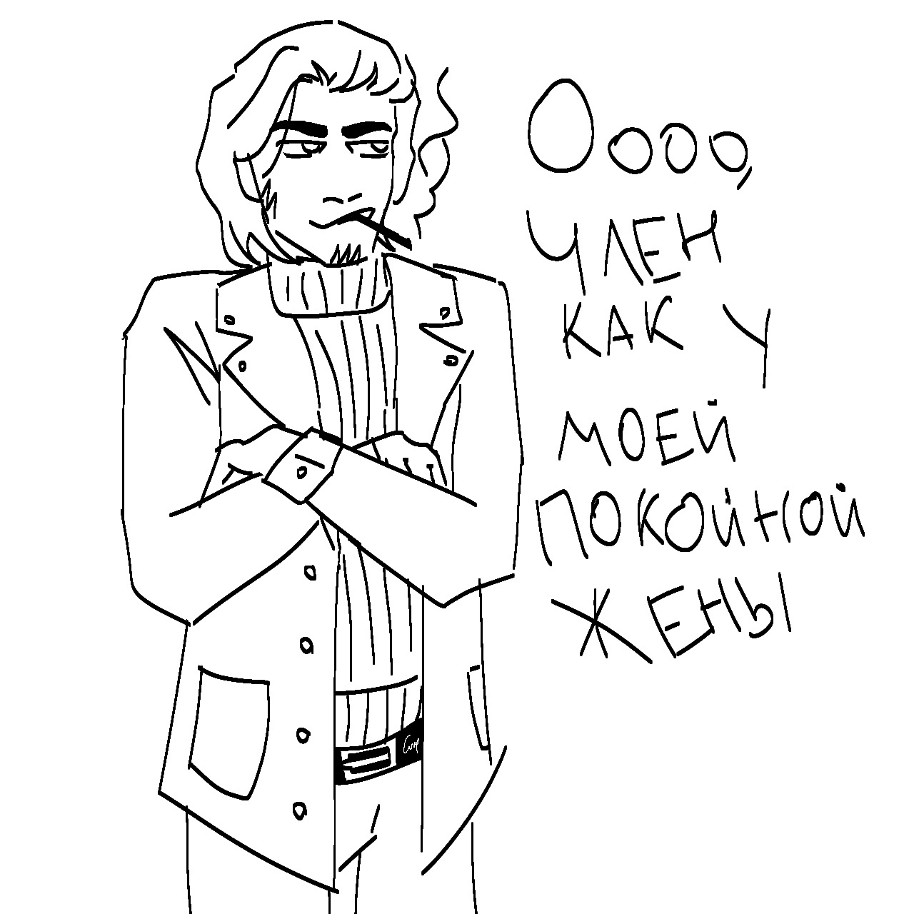 Прошло где-то три часа, и она говорит, что нарисовала одного из персонажей (Дэниэла Адамса из рассказа «Конструктор»). Я прошу ее скинуть, на что получаю вот это: